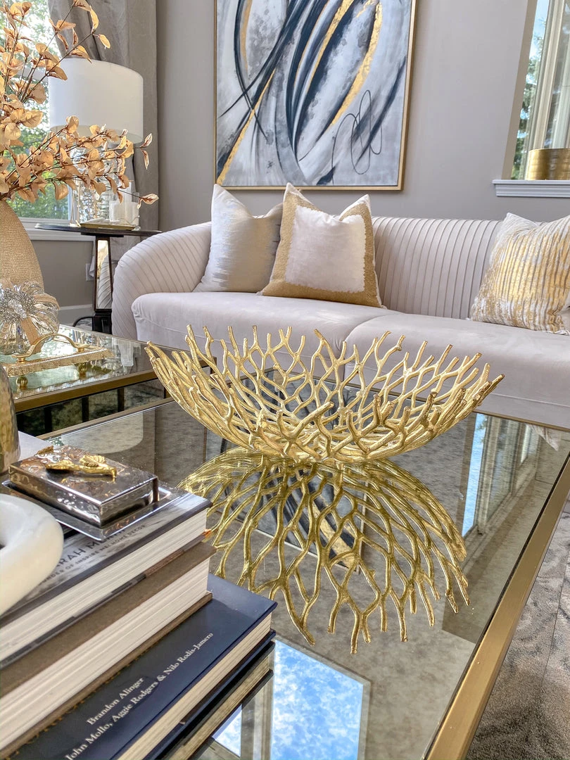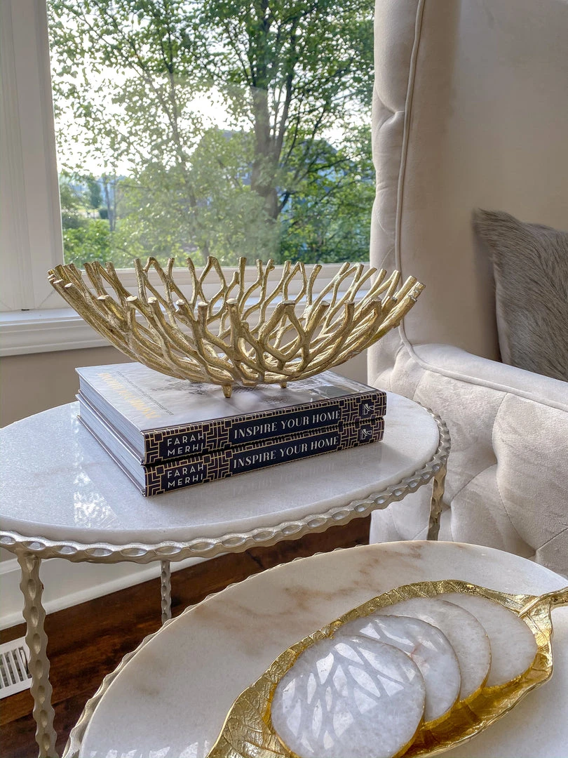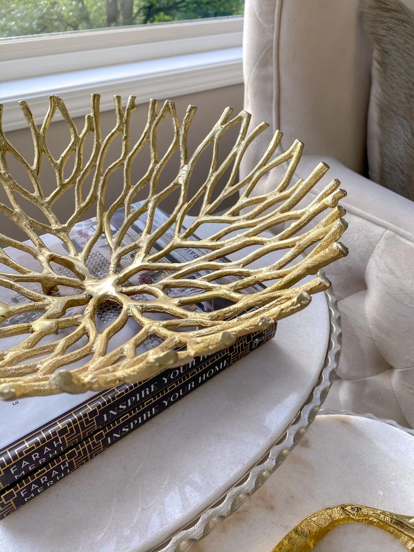 Description: These metal gold branch bowls bring such an interesting and natural feel to your decor! They are perfect to style your fall pumpkins in and come in 2 sizes!!