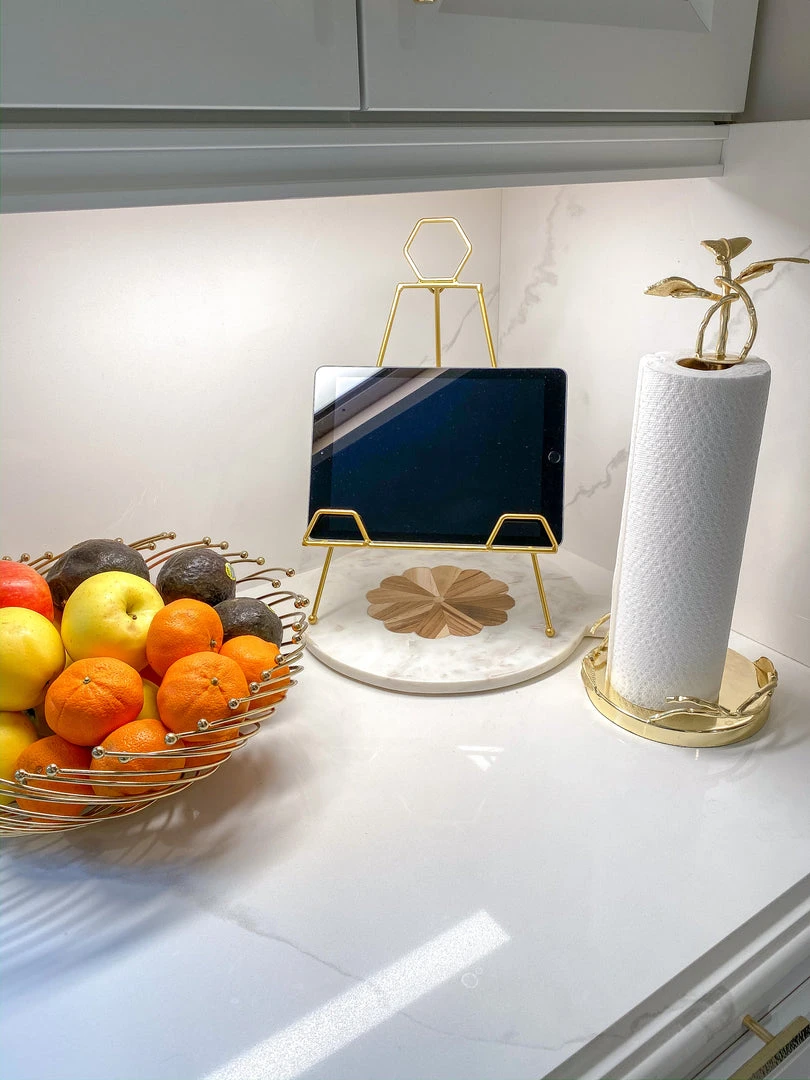 Inspire Me! Home Decor Round Marble Tray With Gold Edge And Metal Details