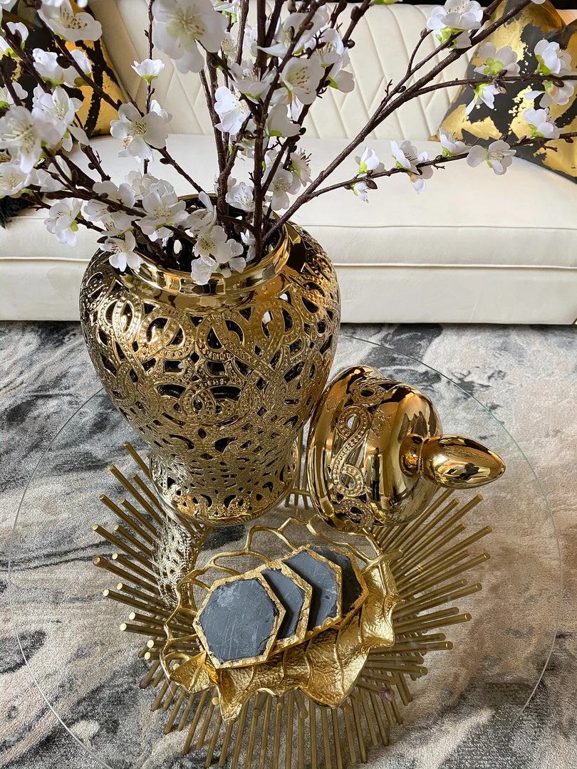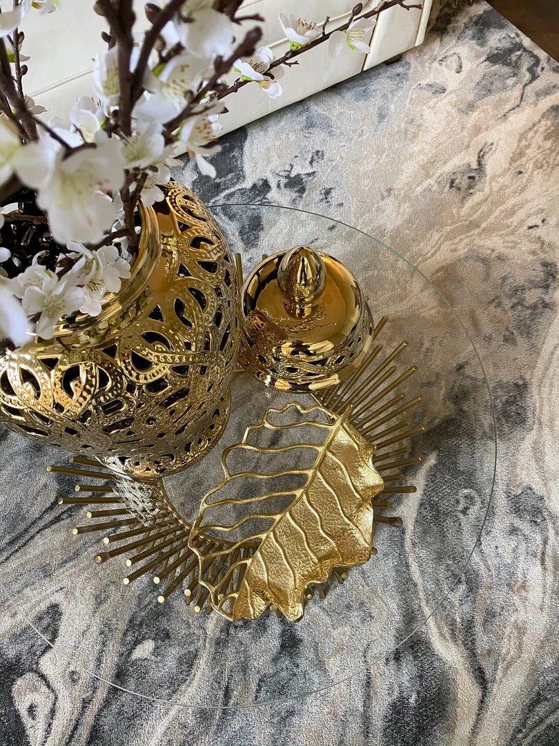 Inspire Me! Home Decor Round Marble Tray With Gold Edge And Metal Details