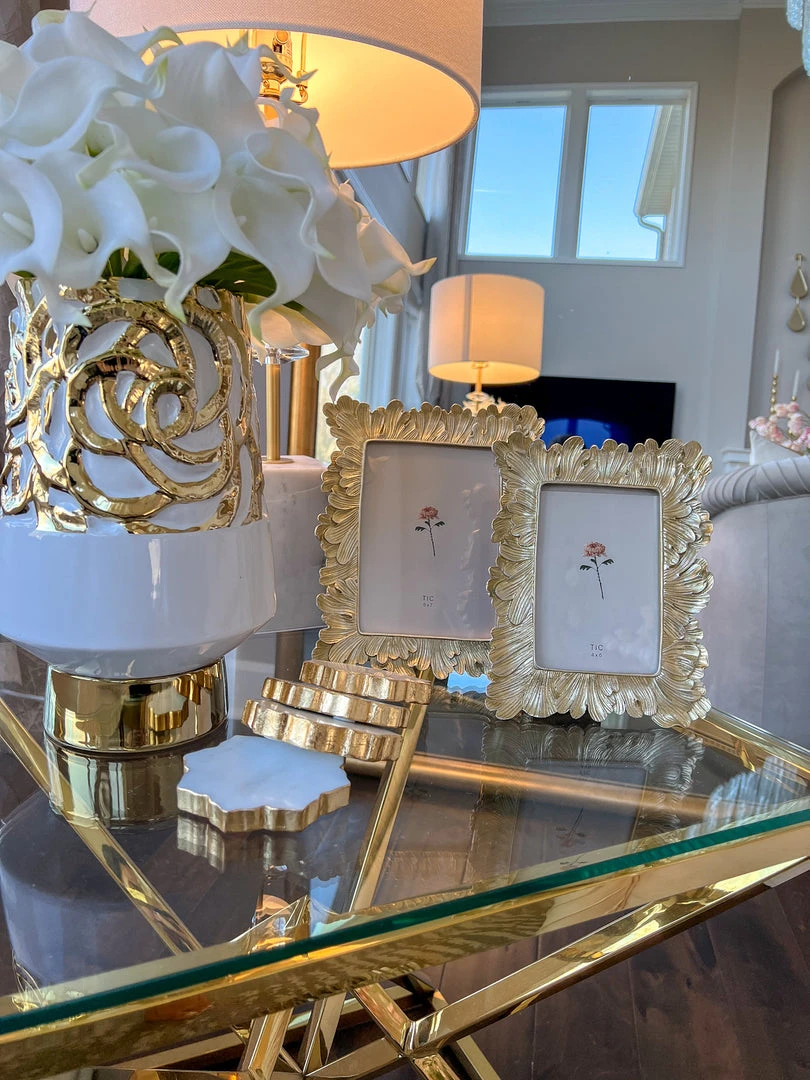 Description: This is a beautiful gold picture frame to display your precious photos.
