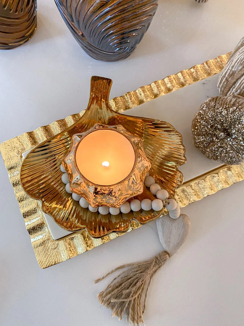 Description: This stylish ceramic tray resembles delicate petals or leaves for a beautiful nature theme. Perfect for displaying candles, small decor, or on its own!