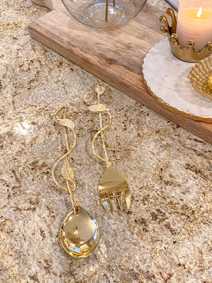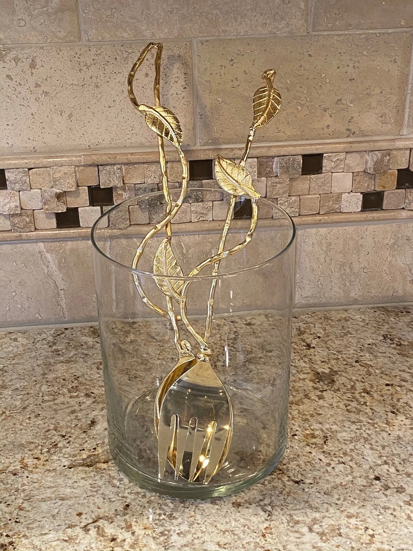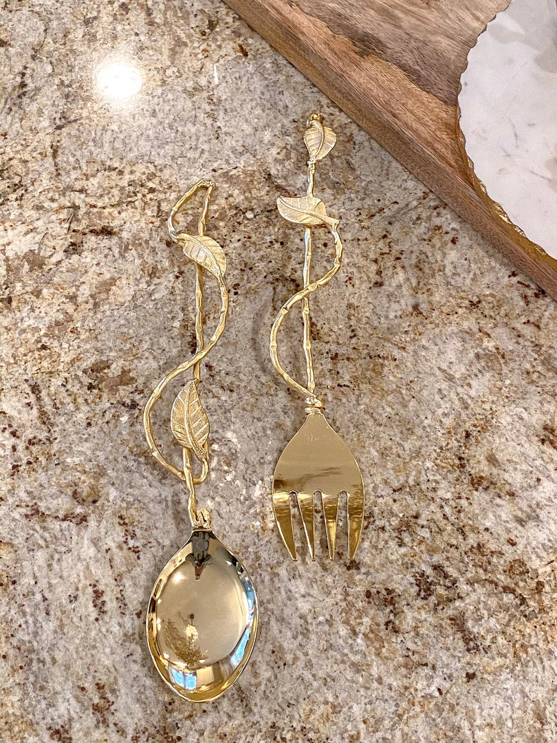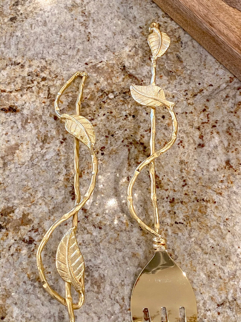 (Set of 2) Salad servers with flamboyant branch handles with leaves.