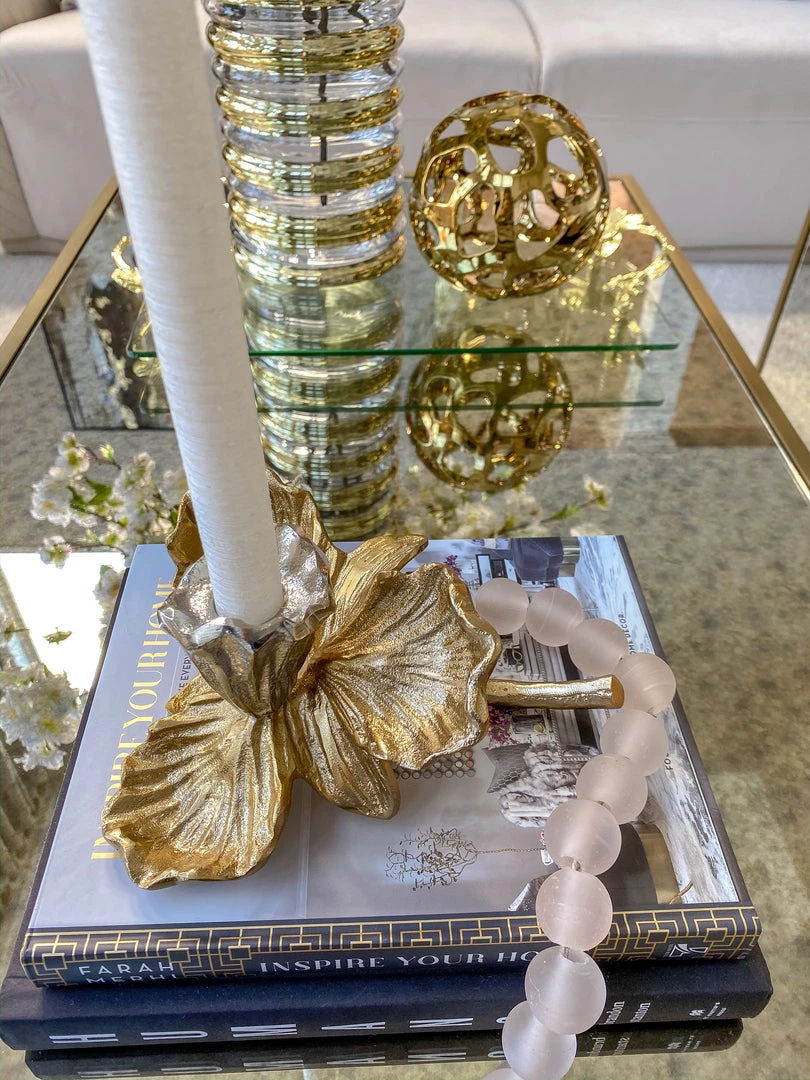 Description: This stunning floral candle holder is perfect your home! A tealight candle sits int eh center of the bloom to offer a warm glow!