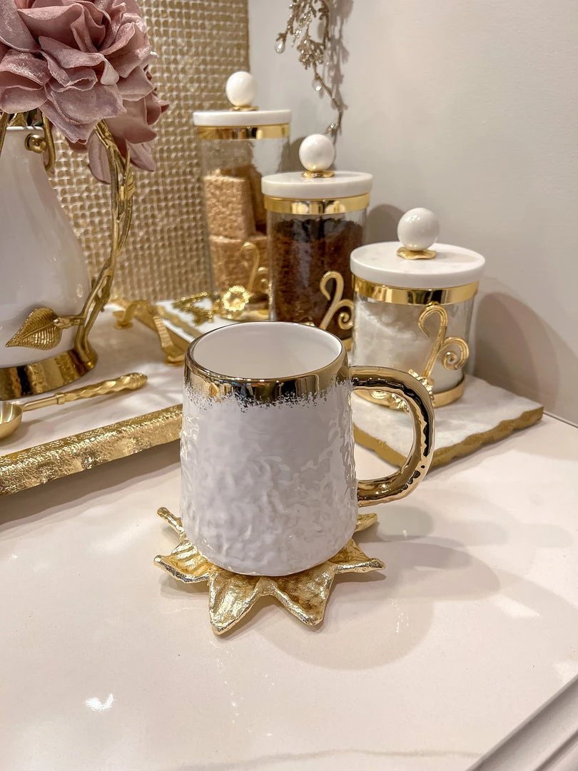 Inspire Me! Home Decor White Ceramic Jar With Elegant Gold Details (2 Sizes)