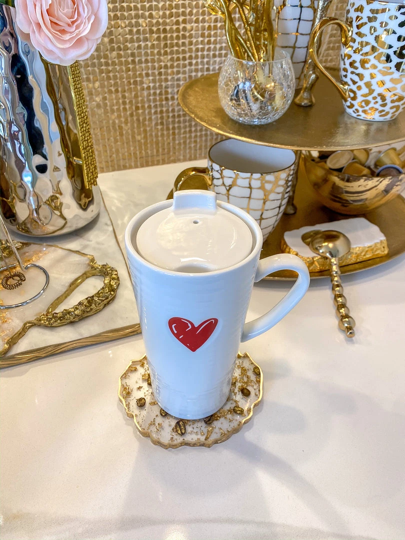 This lidded travel mug features the cutest red heart on the front and allows you to spread a little love wherever you go.