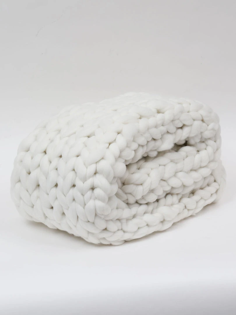Description: This oversized knitted throw will make a beautiful statement on your couch or side chair. Super soft and super cozy!