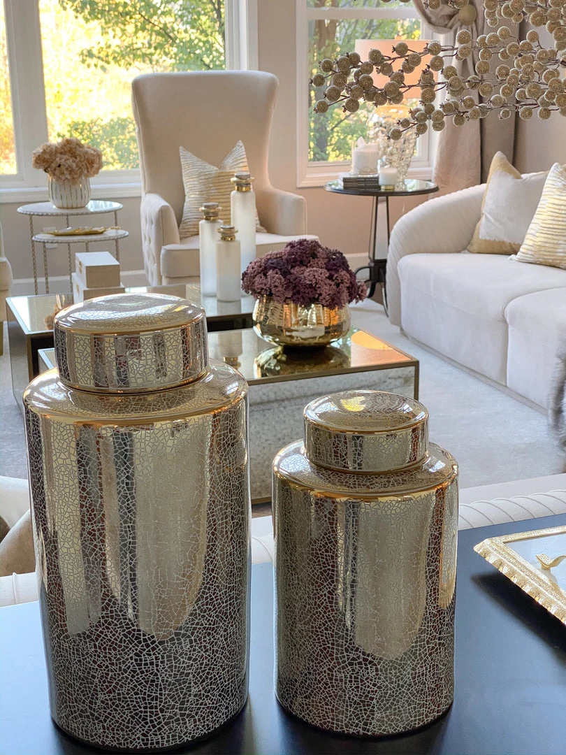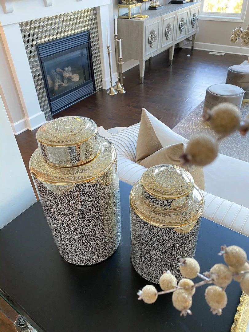 Description: These jars come with a sparkle of gold on each jar to catch and reflect the sunlight.