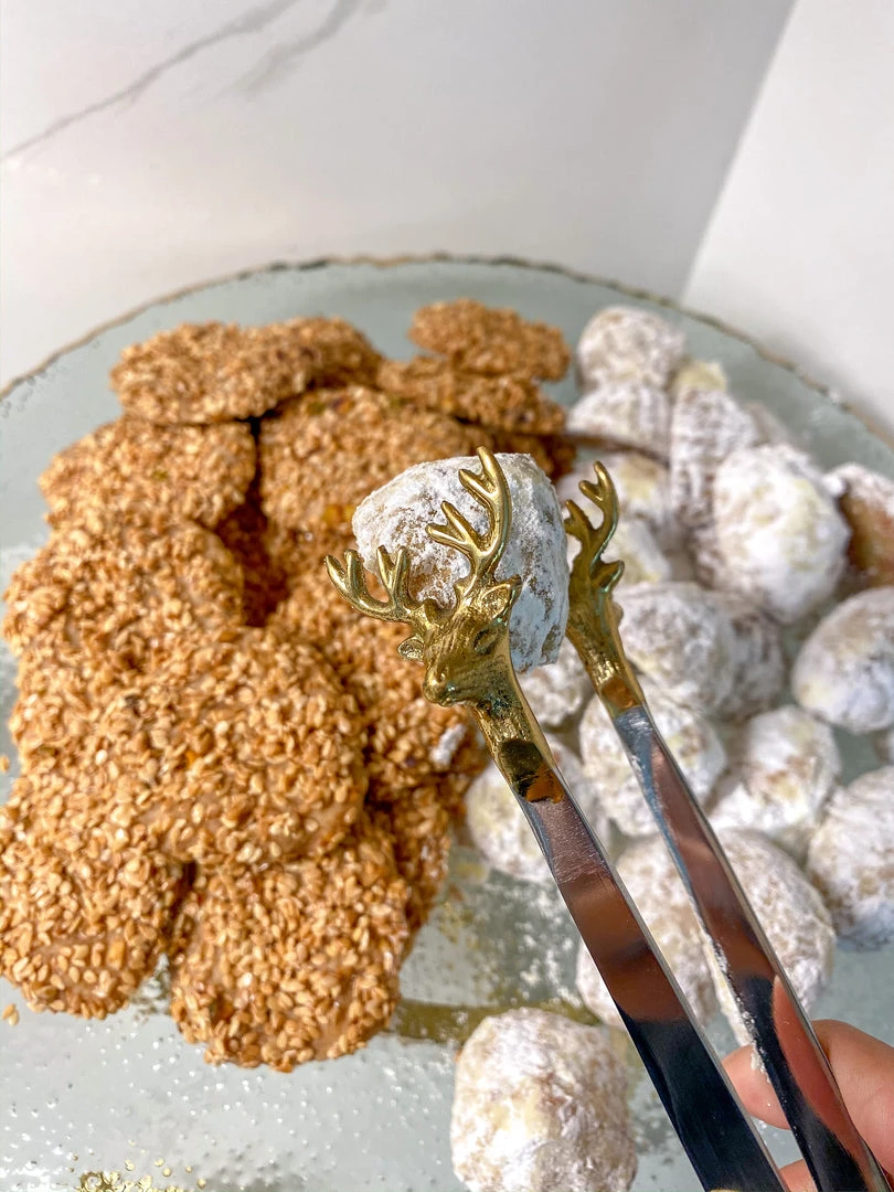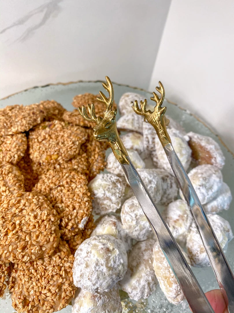 These reindeer snack tongs are perfect for serving snacks, Ice, or other things to your gests! They are very festive and bring a pop of glam to your table top!