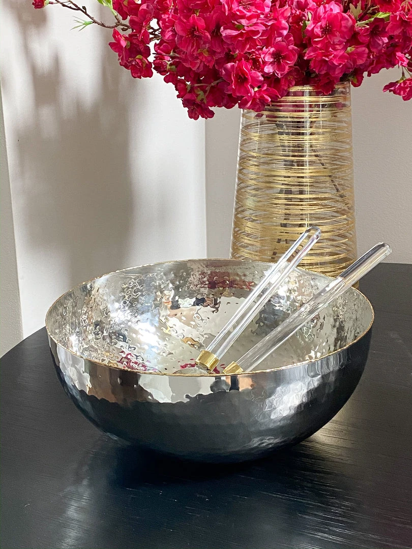 This salad bowl has a touch of gold to elevate your salad presentation!