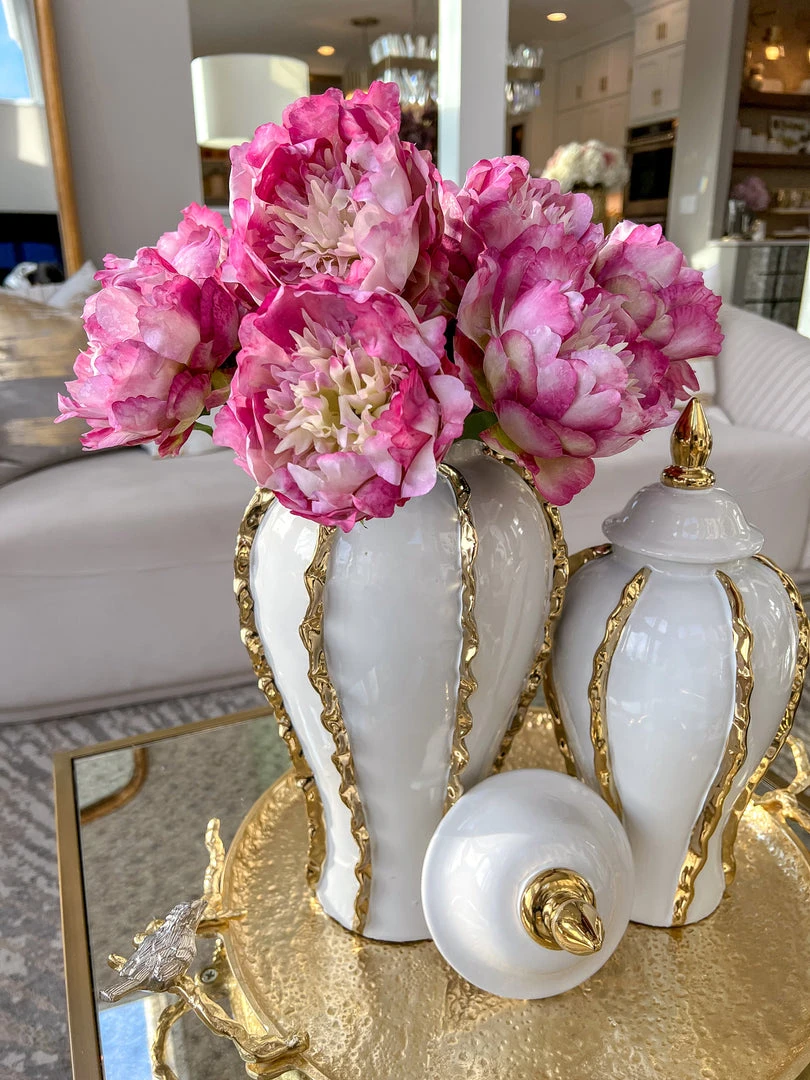 Inspire Me! Home Decor White Ceramic Candle Holder With Gold Elegant Details (2 Sizes)
