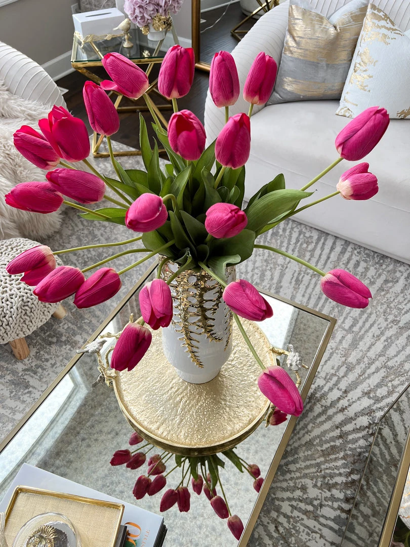 Description: This large gold decorative tray has adorable silver birds perched atop both handles. This will make a stunning vignette wherever you style it.