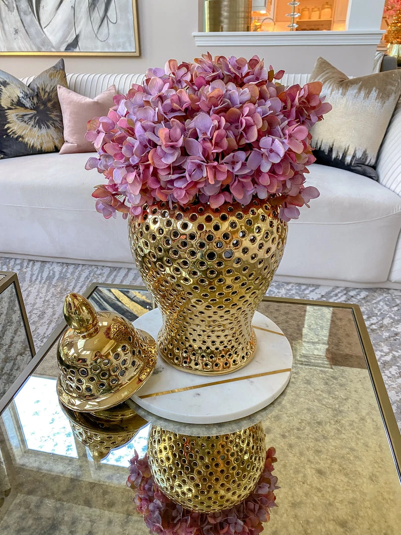 Inspire Me! Home Decor White Ceramic Jar With Elegant Gold Details (2 Sizes)