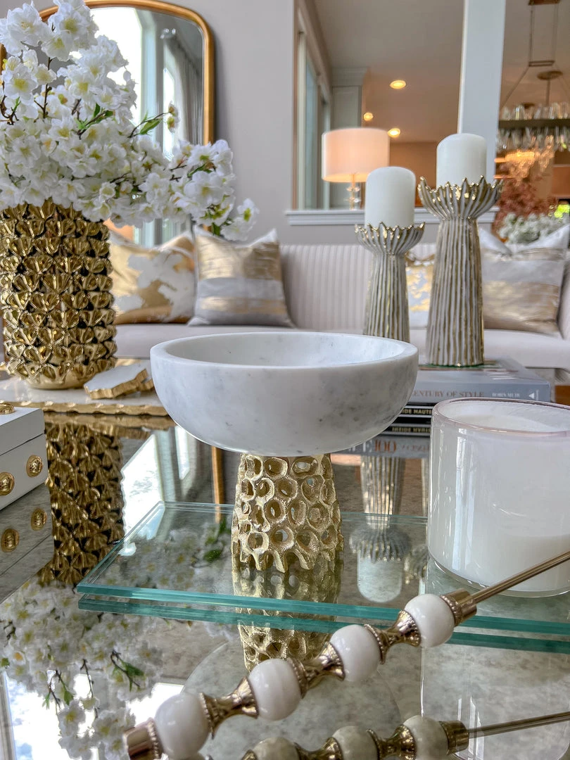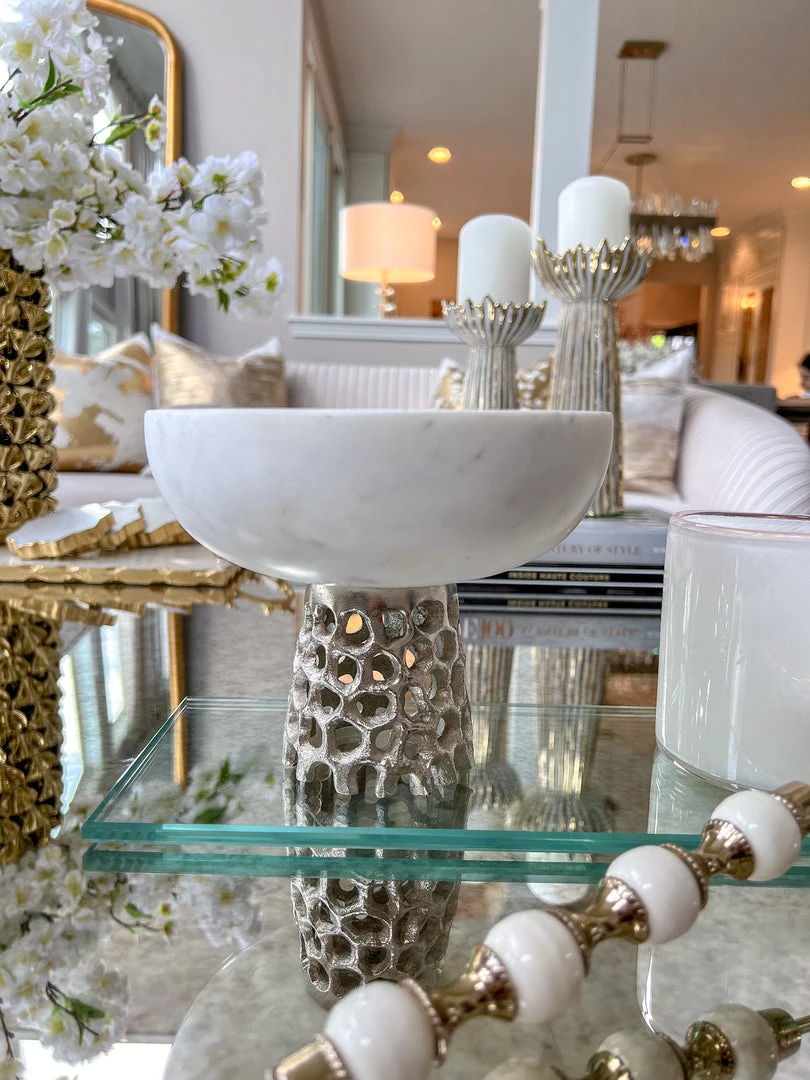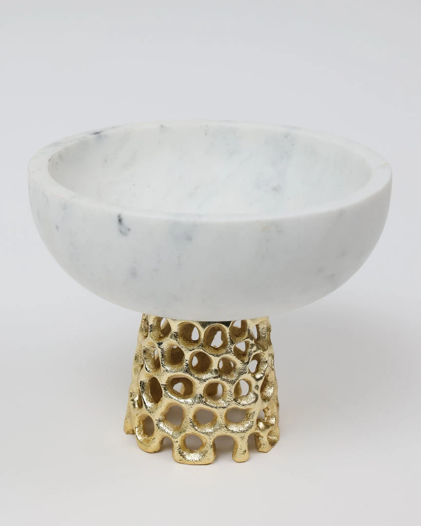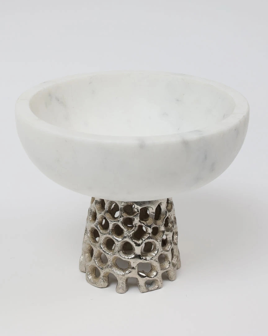 Inspire Me! Home Decor Marble Bowl With Intricate Detailed Metal Base (2 Colors)