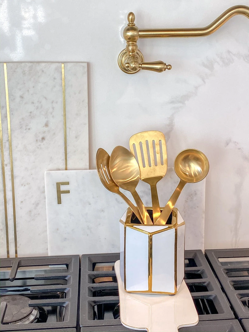 Description: This stunning gold mixing spoon will help you serve up some style! We love the matte gold finish and sleek design.