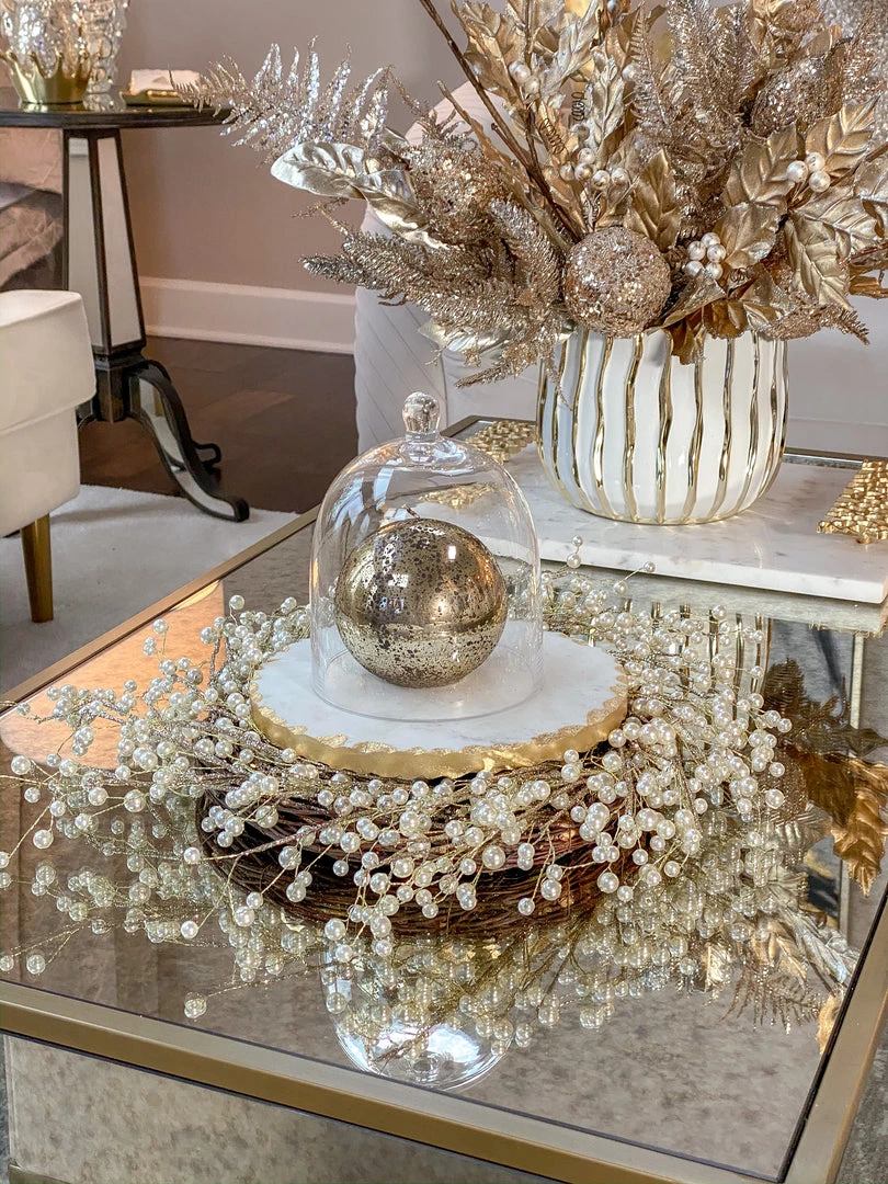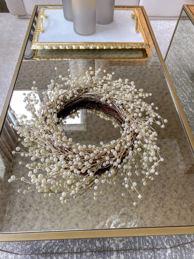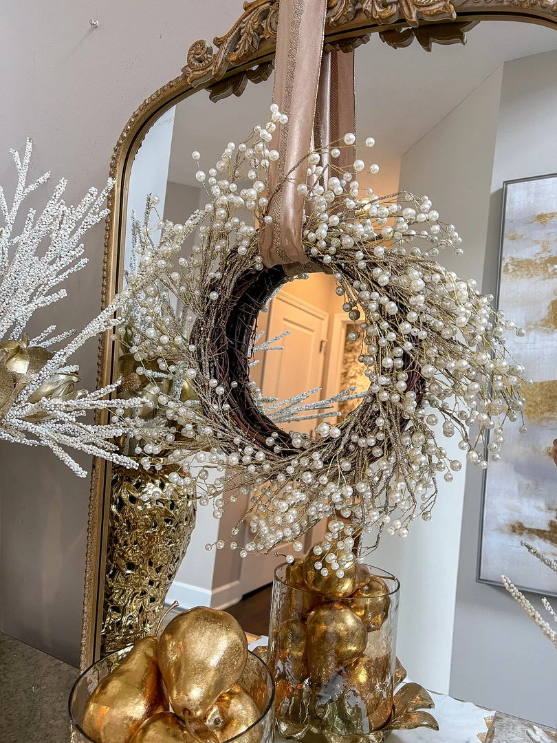 This 20 inch pear wreath is a stunning way to bring texture to your holiday decor. Perfect to leave up all winter and ties back perfectly to our 24″ Pearl tree and to the 18″ pearl tree as well!