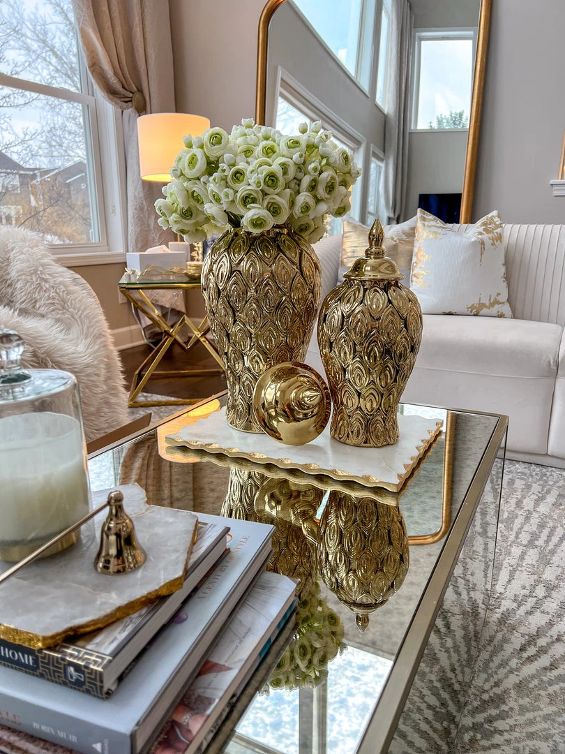 Inspire Me! Home Decor Round Marble Tray With Gold Edge And Metal Details