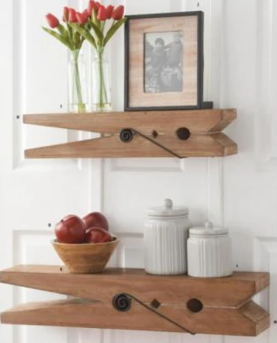 Description: This charming wooden clothespin shelf is so adorable! This would make the perfect storage shelf for your laundry room!