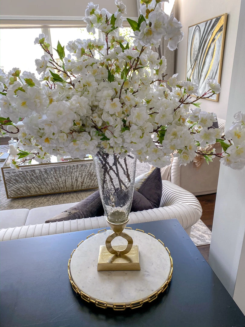 Inspire Me! Home Decor Rectangular Marble Tray With Cherry Blossom Details