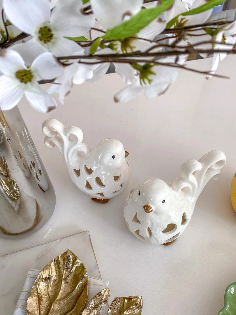 Inspire Me! Home Decor White Ceramic Candle Holder With Gold Elegant Details (2 Sizes)