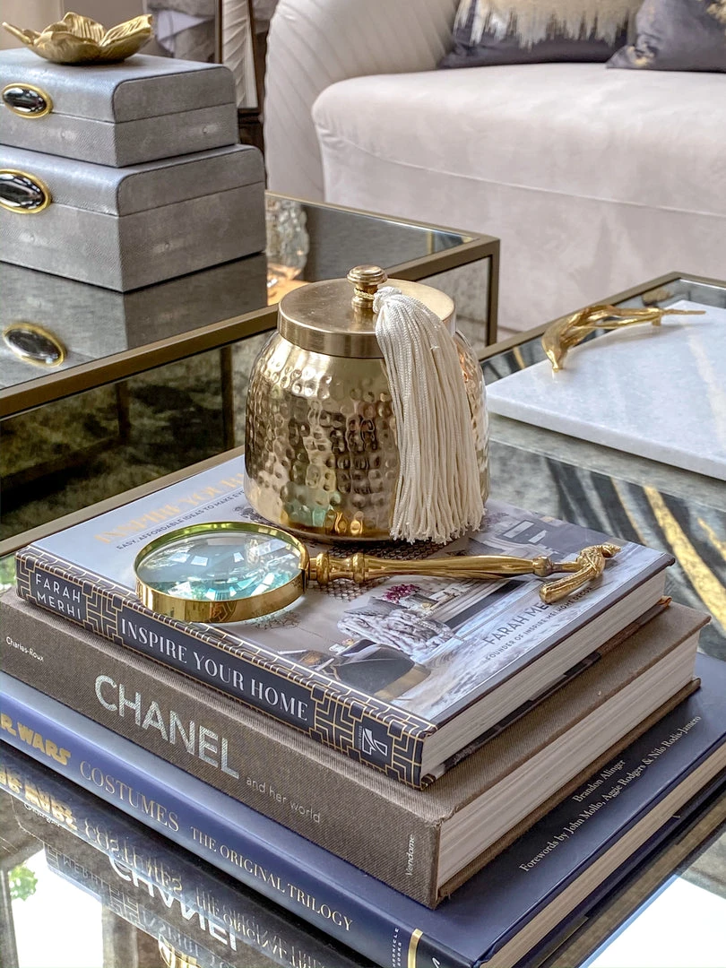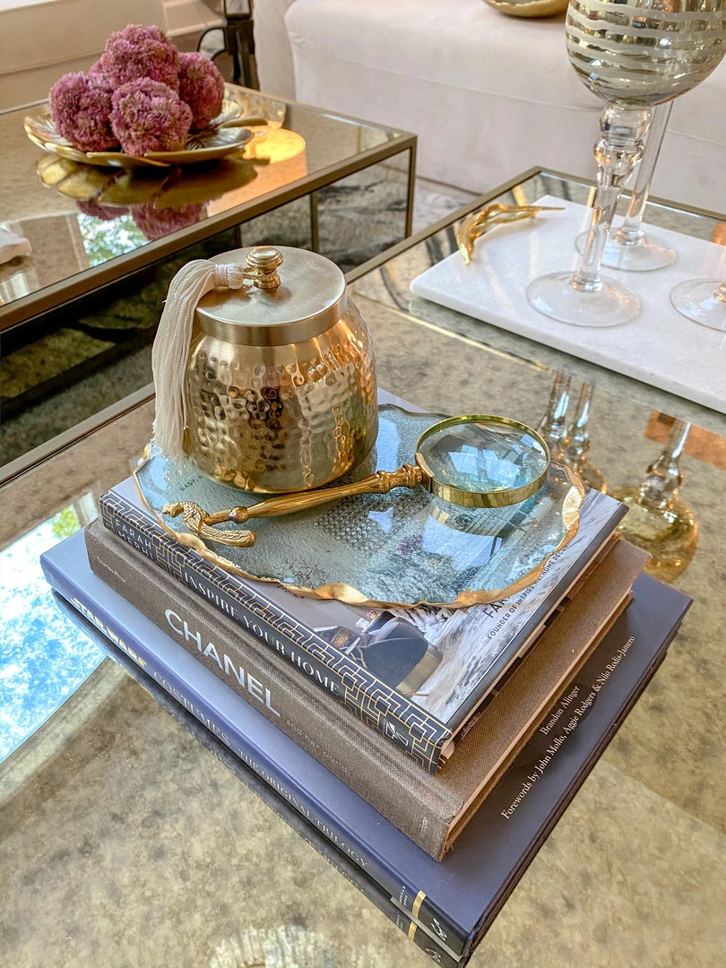 Inspire Me! Home Decor Round Marble Tray With Gold Edge And Metal Details