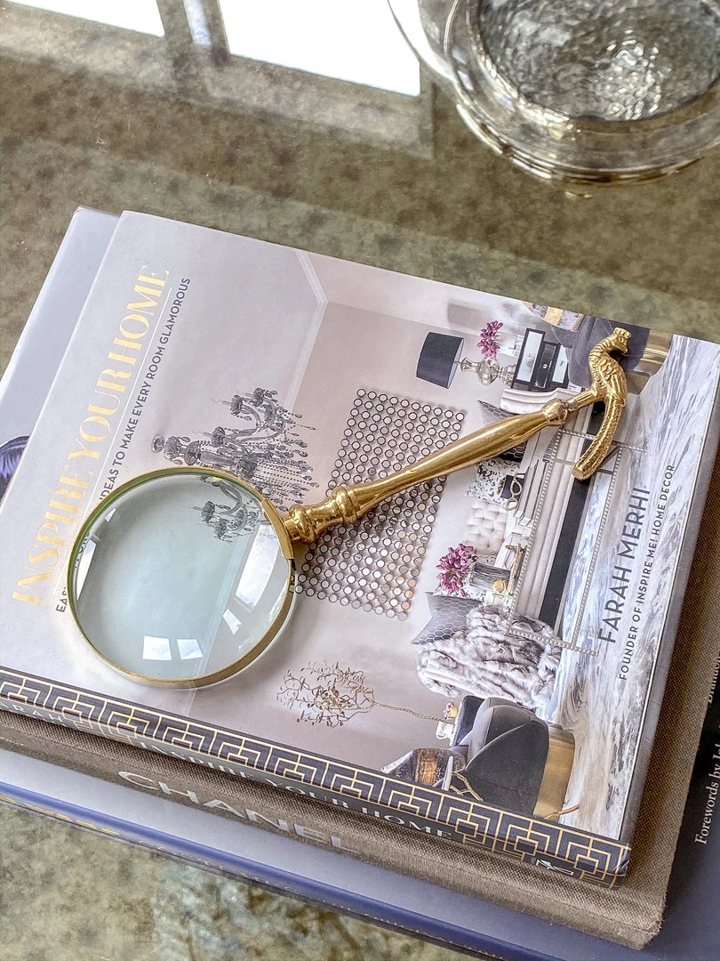 This cute magnifying glass features a small peacock on the end and is great for setting on your book stack or other decor!