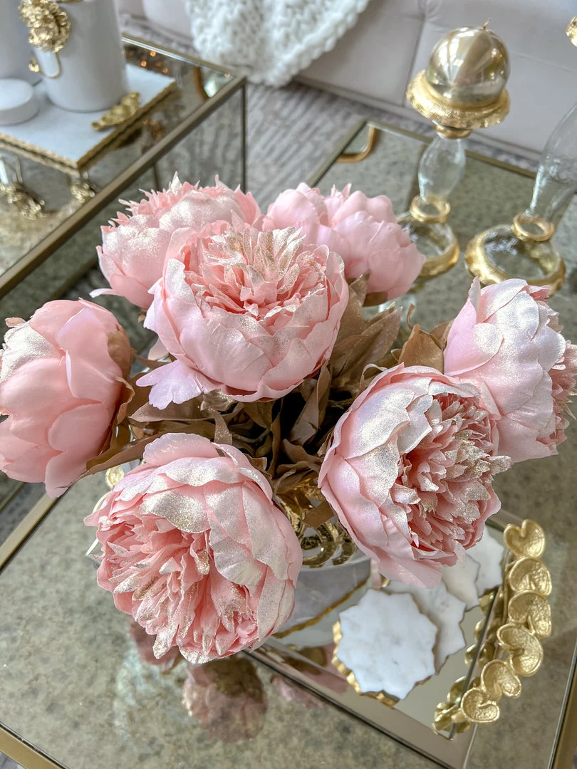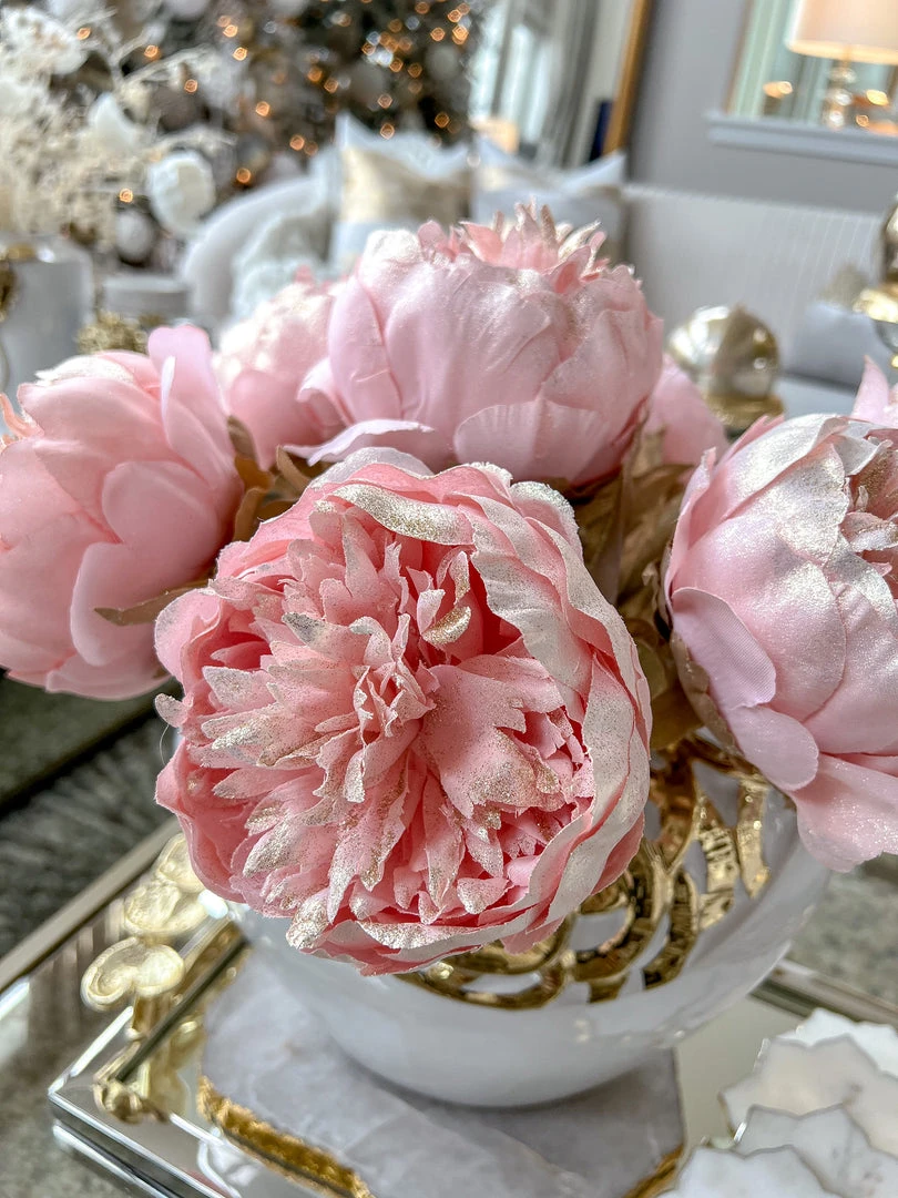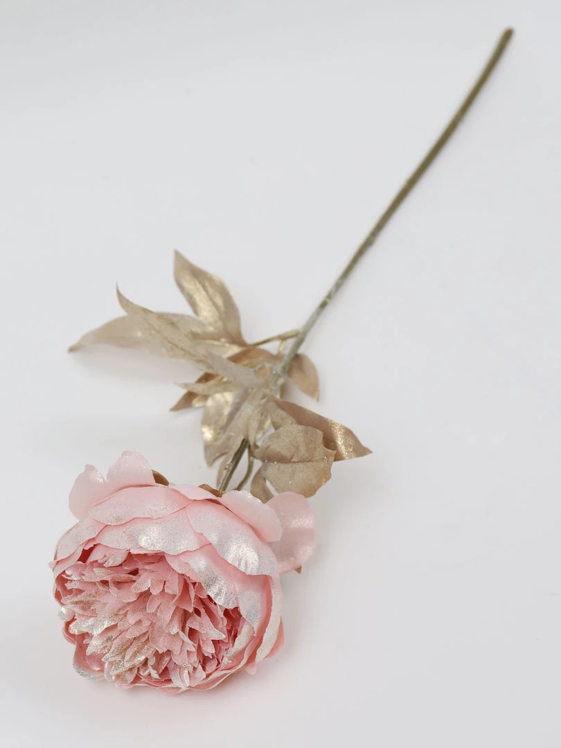 Description: This beautiful faux pink peony will add sparkle to your holiday display or during any season! The stunning color will add a pop of color to any room.