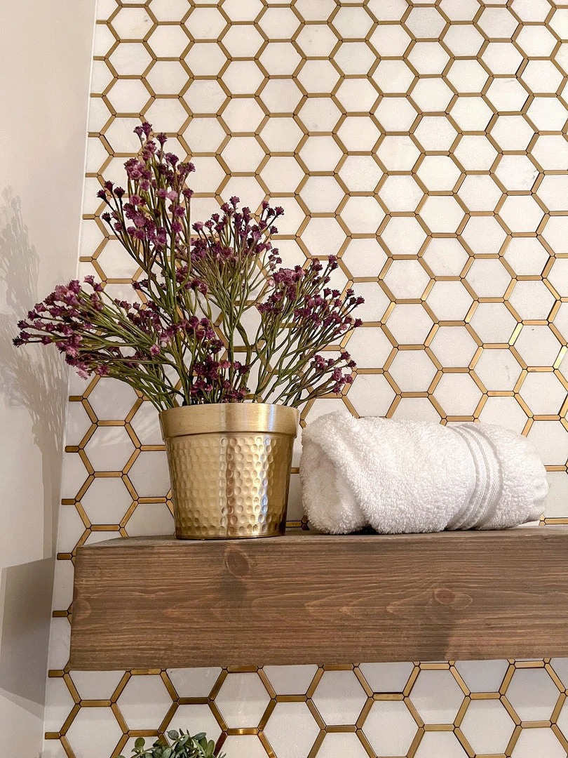 Inspire Me! Home Decor Round Marble Tray With Gold Edge And Metal Details