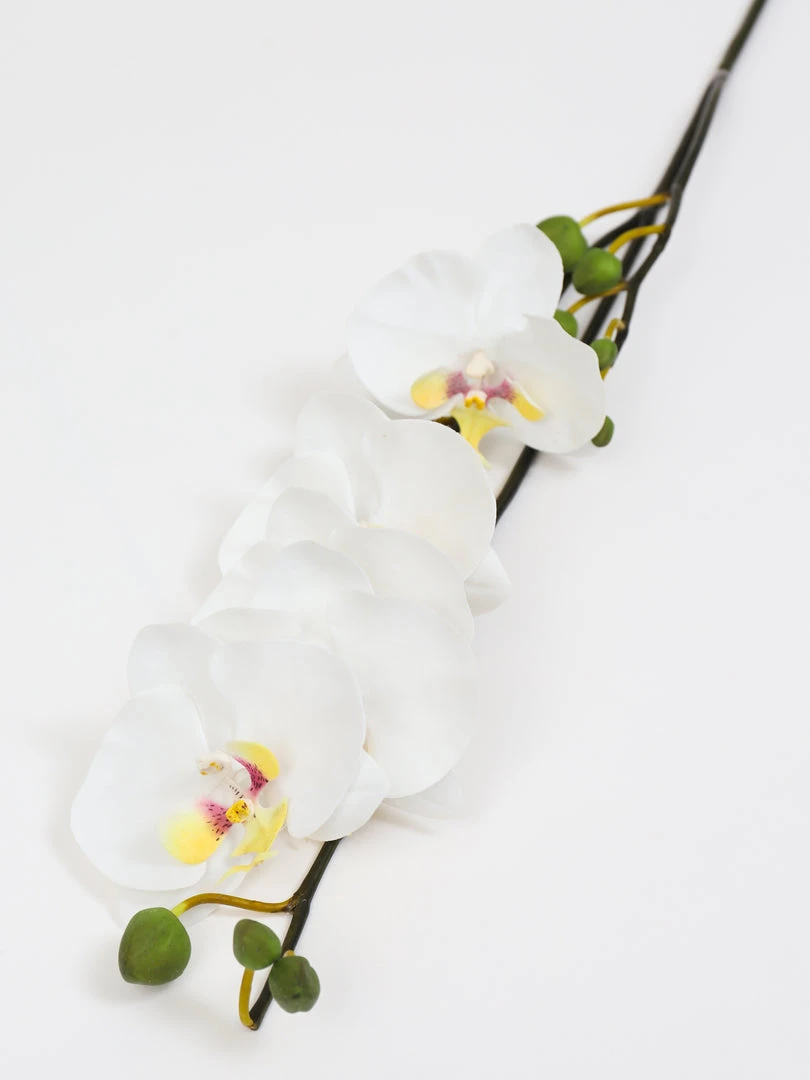 Description: This tall real touch orchid stems is a stunning reminder that spring is near! Lovely in a vase in any room!