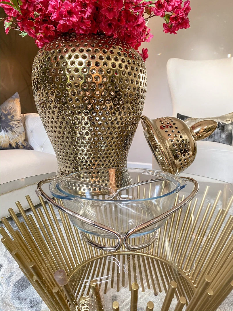This serve-ware dish is perfect for entertaining or just for your everyday meals. Remove the glass insert and bake in it or fill it with your favorite dish and then place it back in its base for an elegant look.