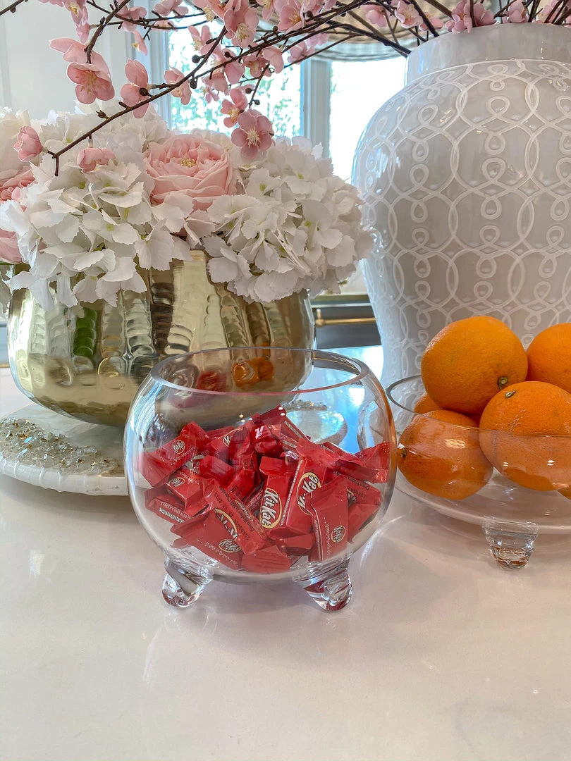 Description: This globe footed bowl has such a cute design! Add in your favorite fillers and this would make a perfect centerpiece!