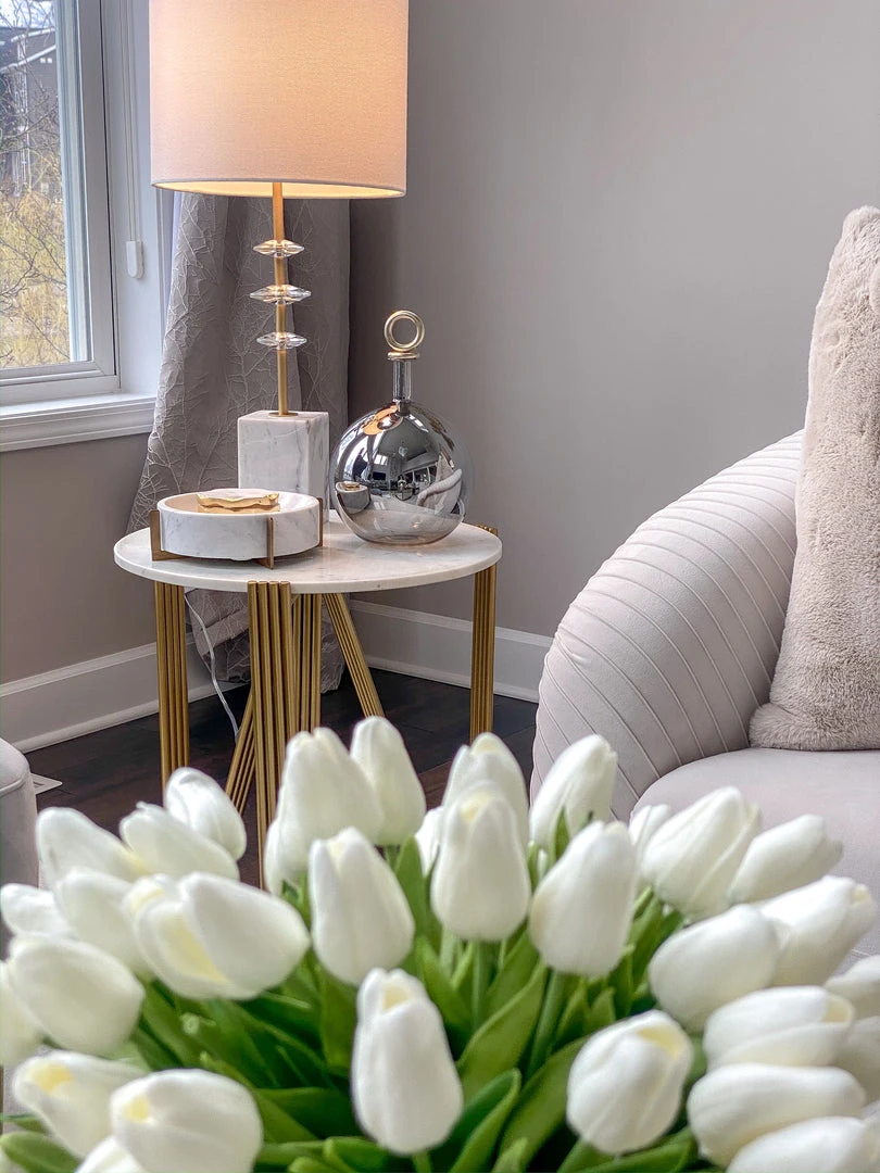 Description: This marble bowl sits on a gold stand and has such a sleek yet modern look. We love to mix gold with marble and this brings both!