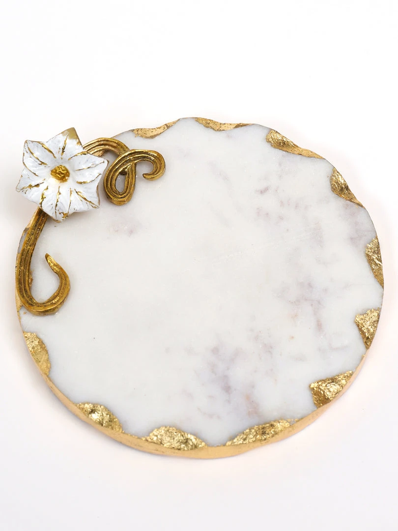 Description: This marble trivet is perfect to place a candle on or use it as a coaster. It is perfect to use on your coffee station or add it to any vignette in your home!