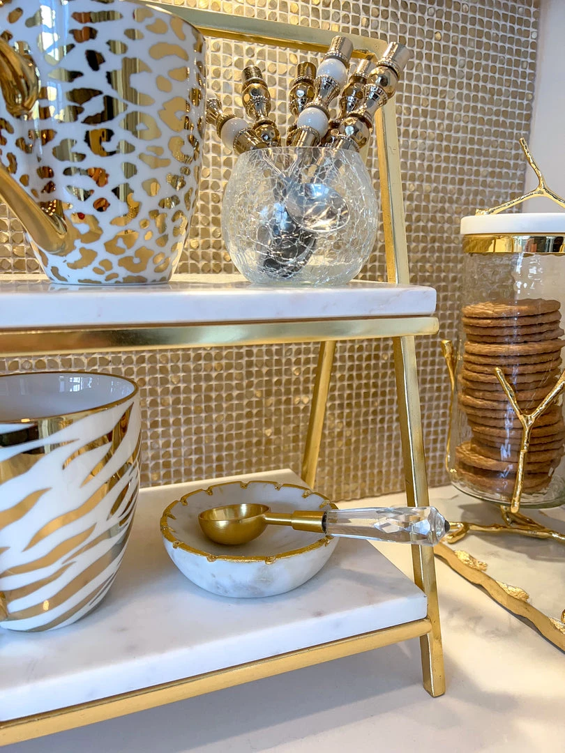 Description: This small gold dish is the cutest addition to your decor! Use it as a spoon rest or to place your rings in. It is can be used for almost anything!