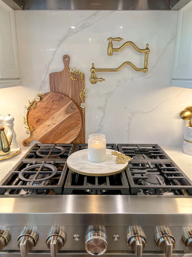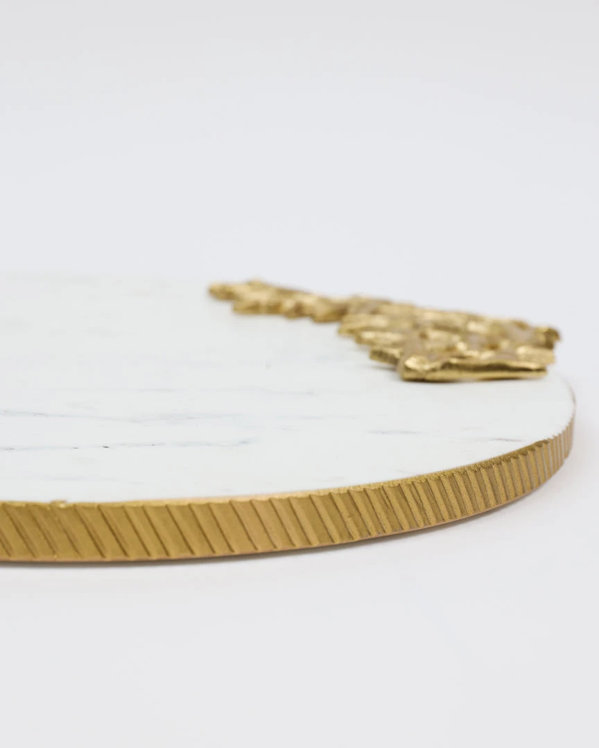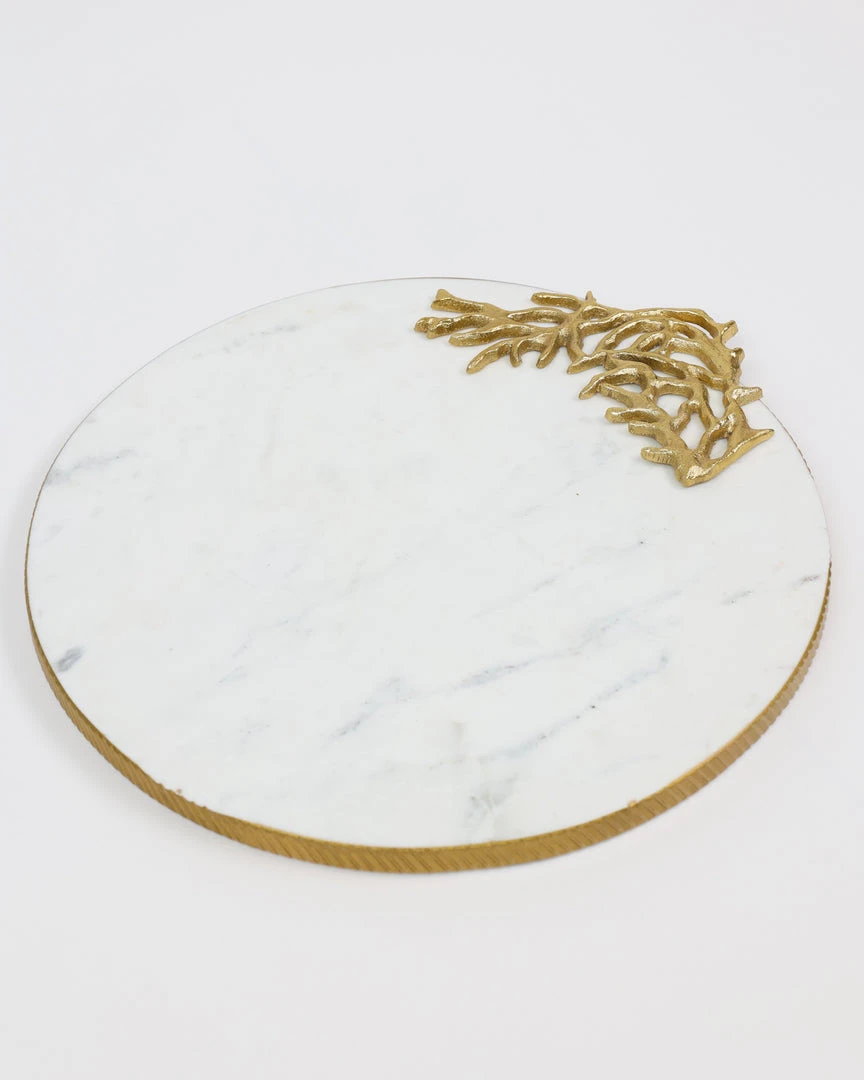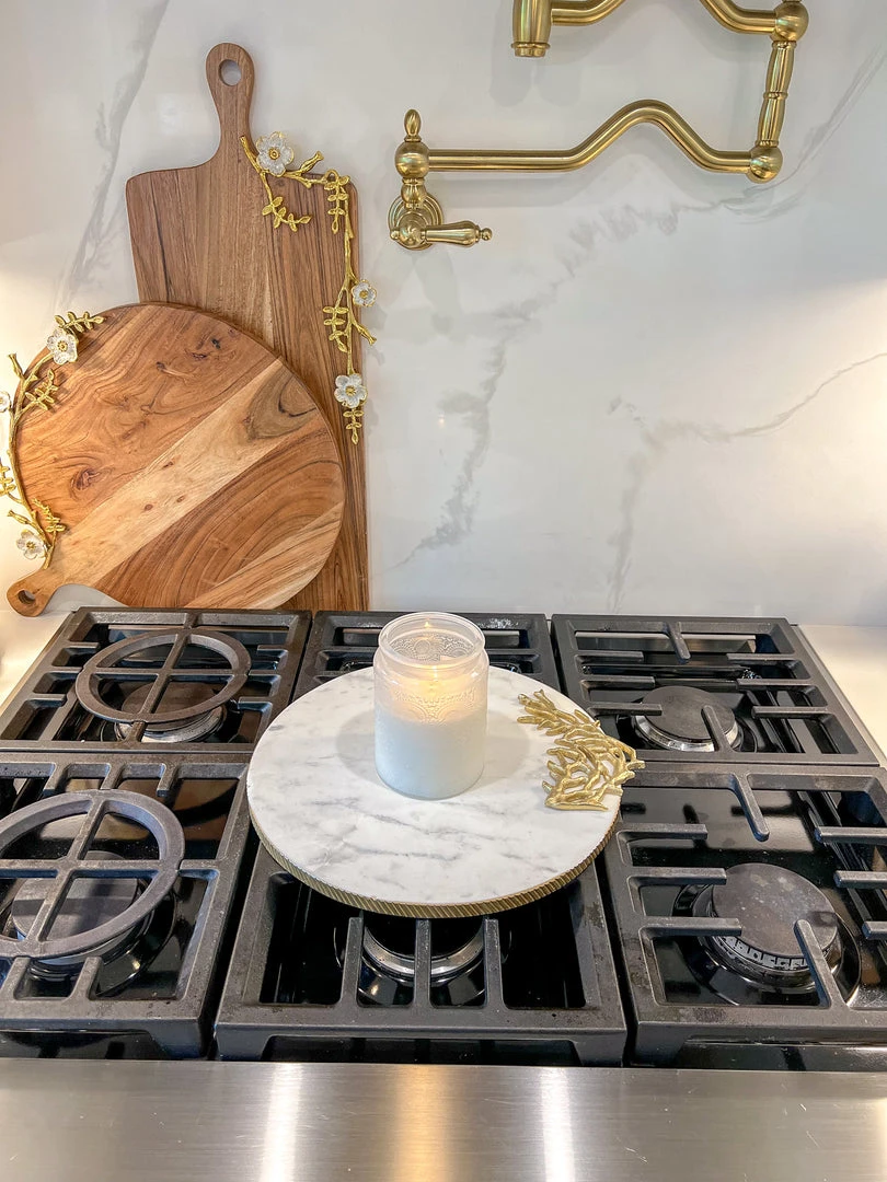 Description: This large round marble tray is perfect to use as a charcuterie board or serving platter. Place candles on or use to style any vignette in your home!