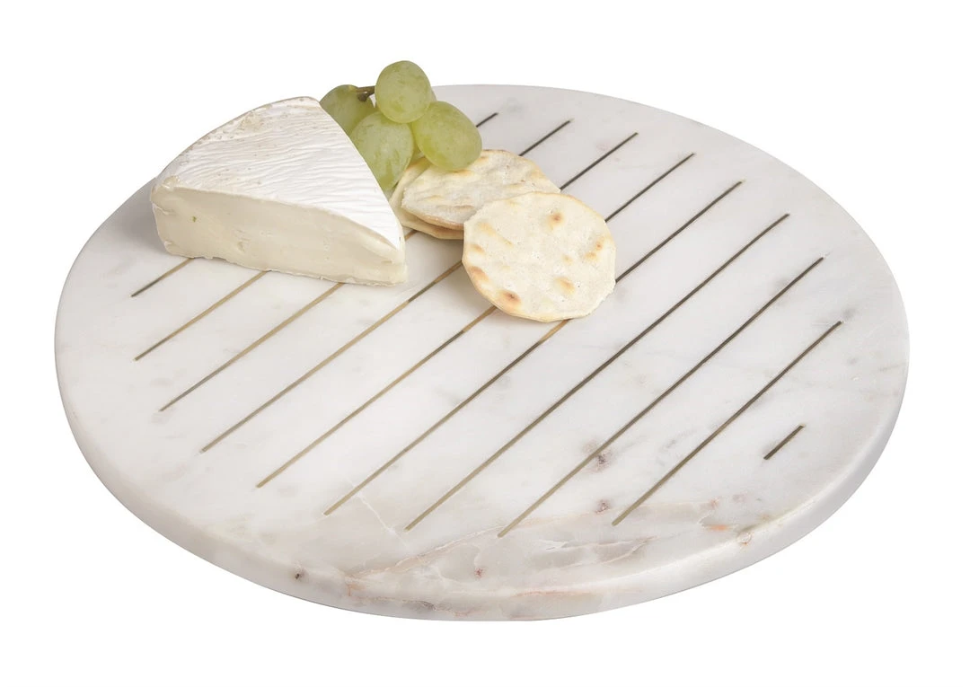 Description: This round marble tray features gold metal inlay lines, this is great for styling in your kitchen or dining room!