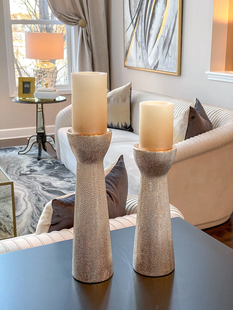 Description: This set of 2 ceramic candle holders features a gorgeous beaded finish.