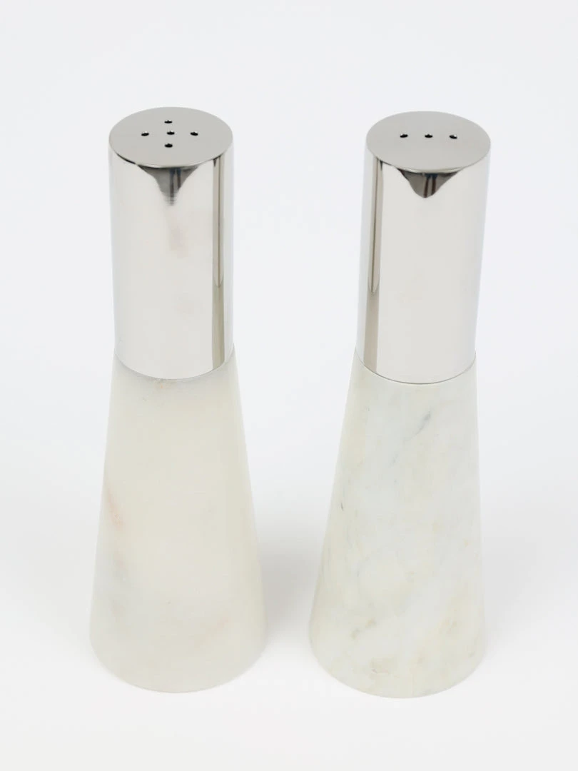 Description: These substantial marble salt and pepper shakers will be the perfect addition to your kitchen accessories.