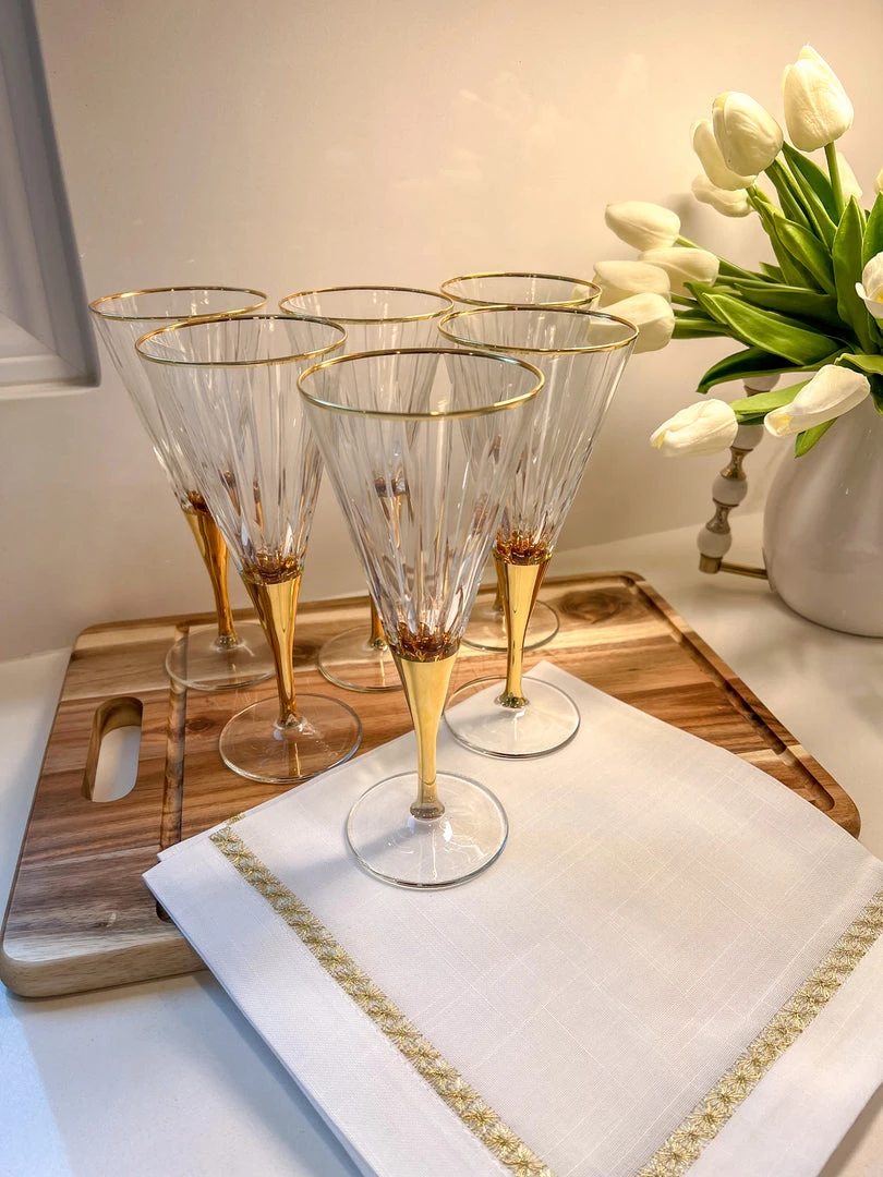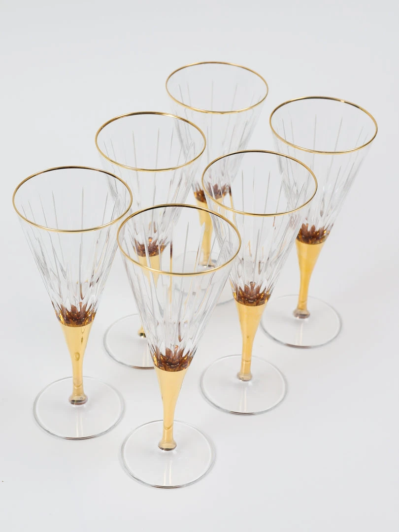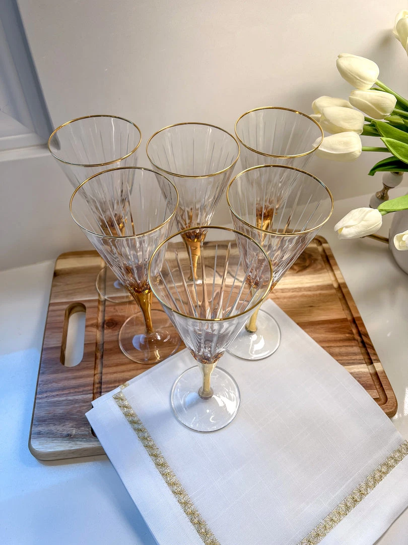 Description: These gold and glass glasses are stunning for any dinner party or to display on your barcart!