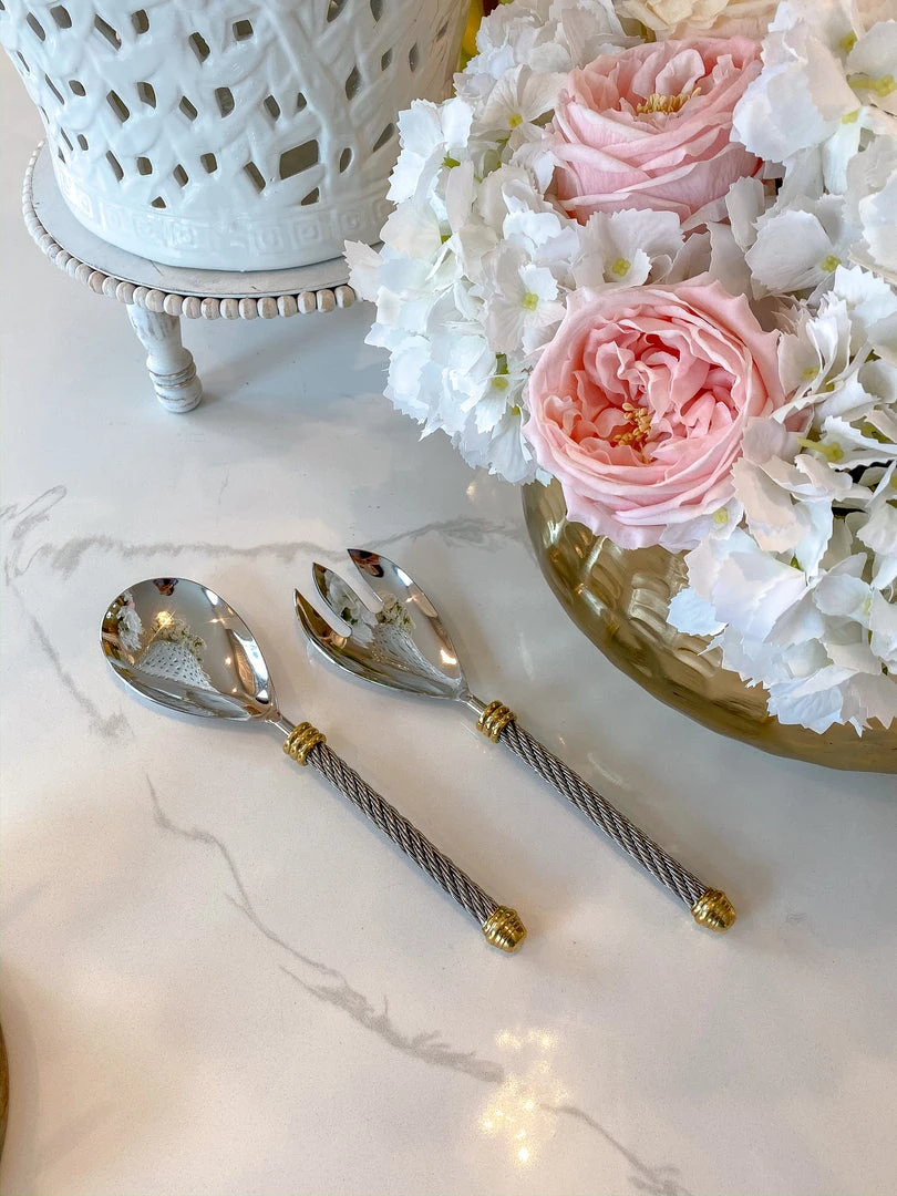 Description: Thiese servers are stunning! The textured coil handle is accented with gold endcaps and add for easy grip and beautiful design!