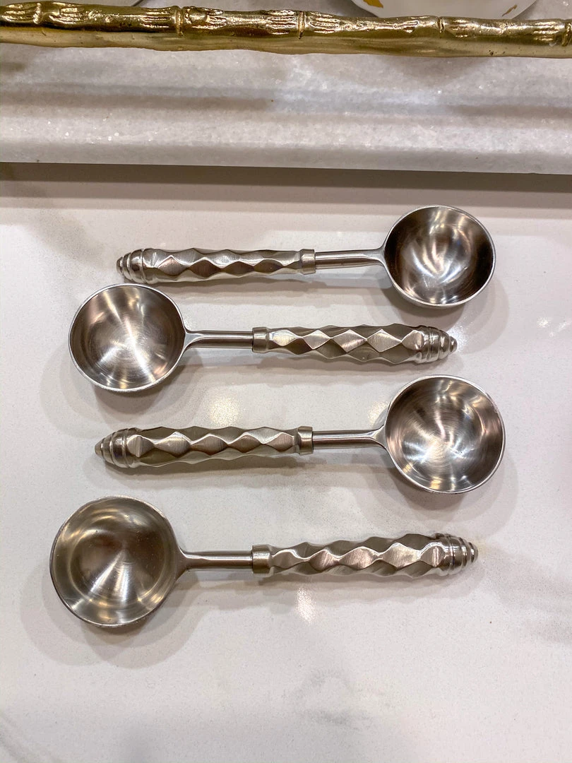 Description: These beautiful Silver hammered spoons are a perfect addition for any time that you’d like to add a touch of sophistication and class to your table.