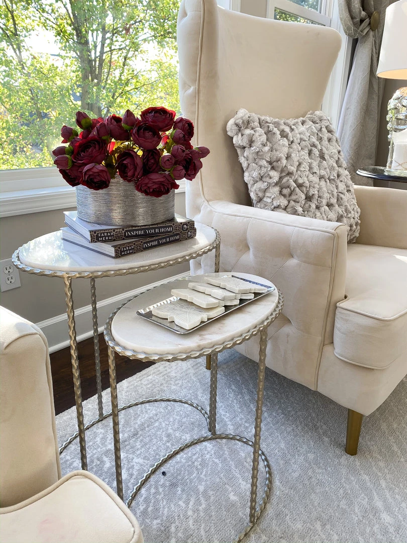 Inspire Me! Home Decor Round Marble Tray With Gold Edge And Metal Details