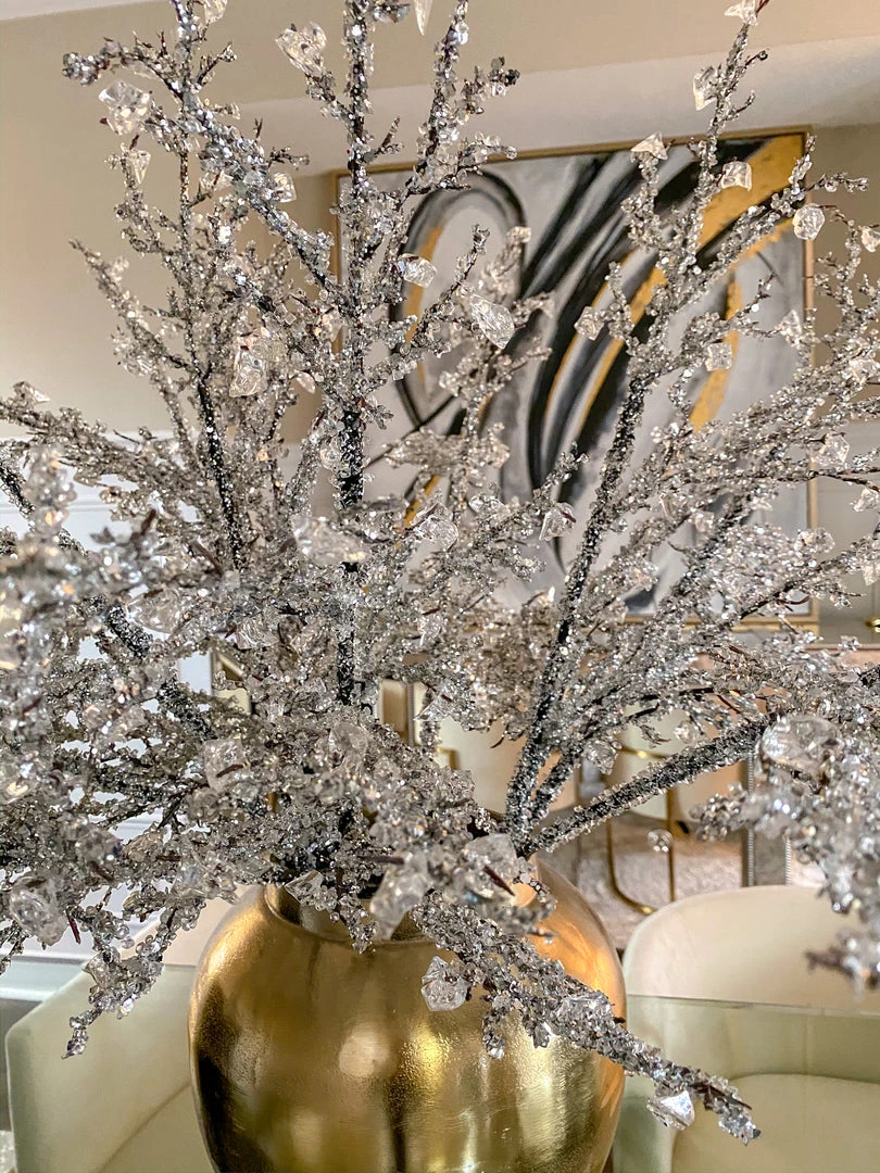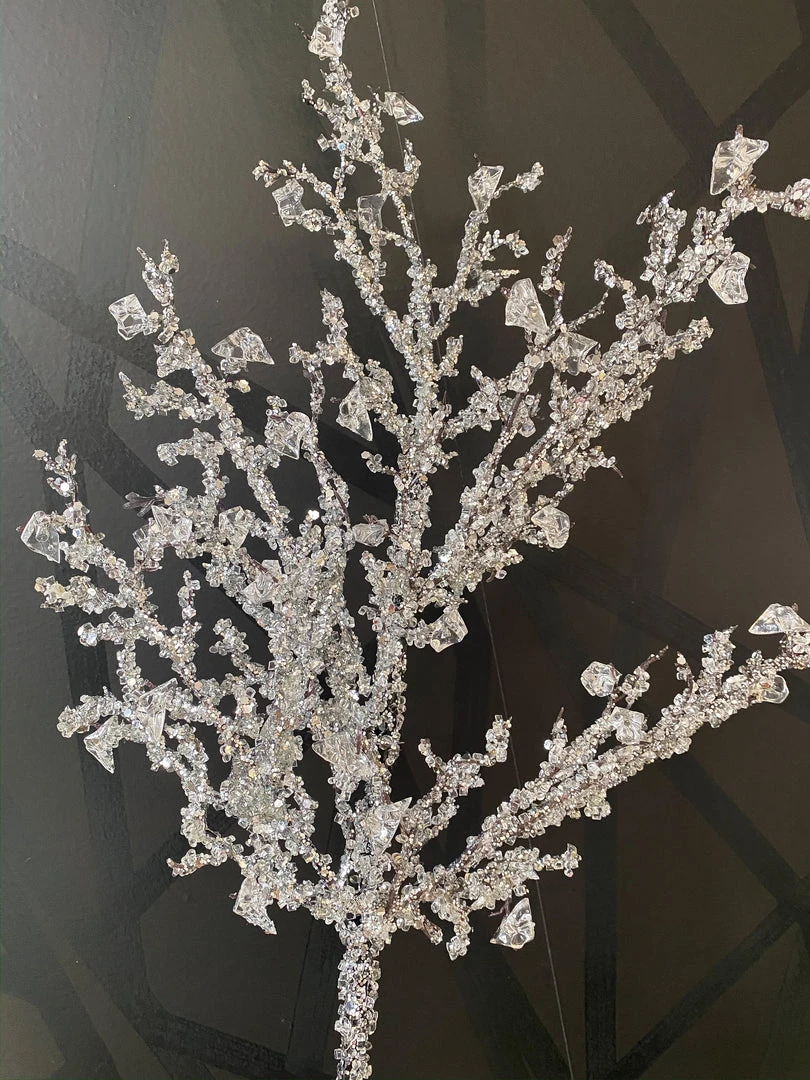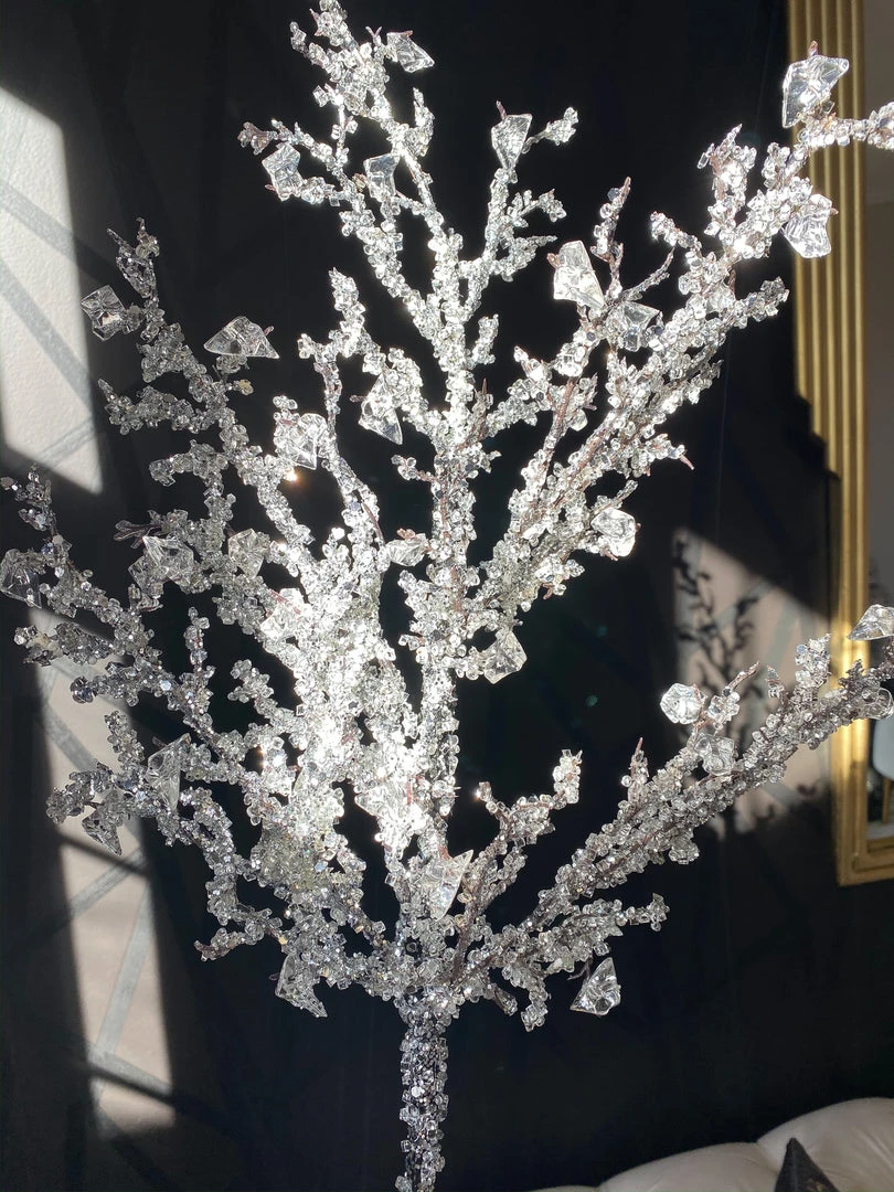 Description: This branch has frozen icicles on it for a glamorous addition to your holiday decor.