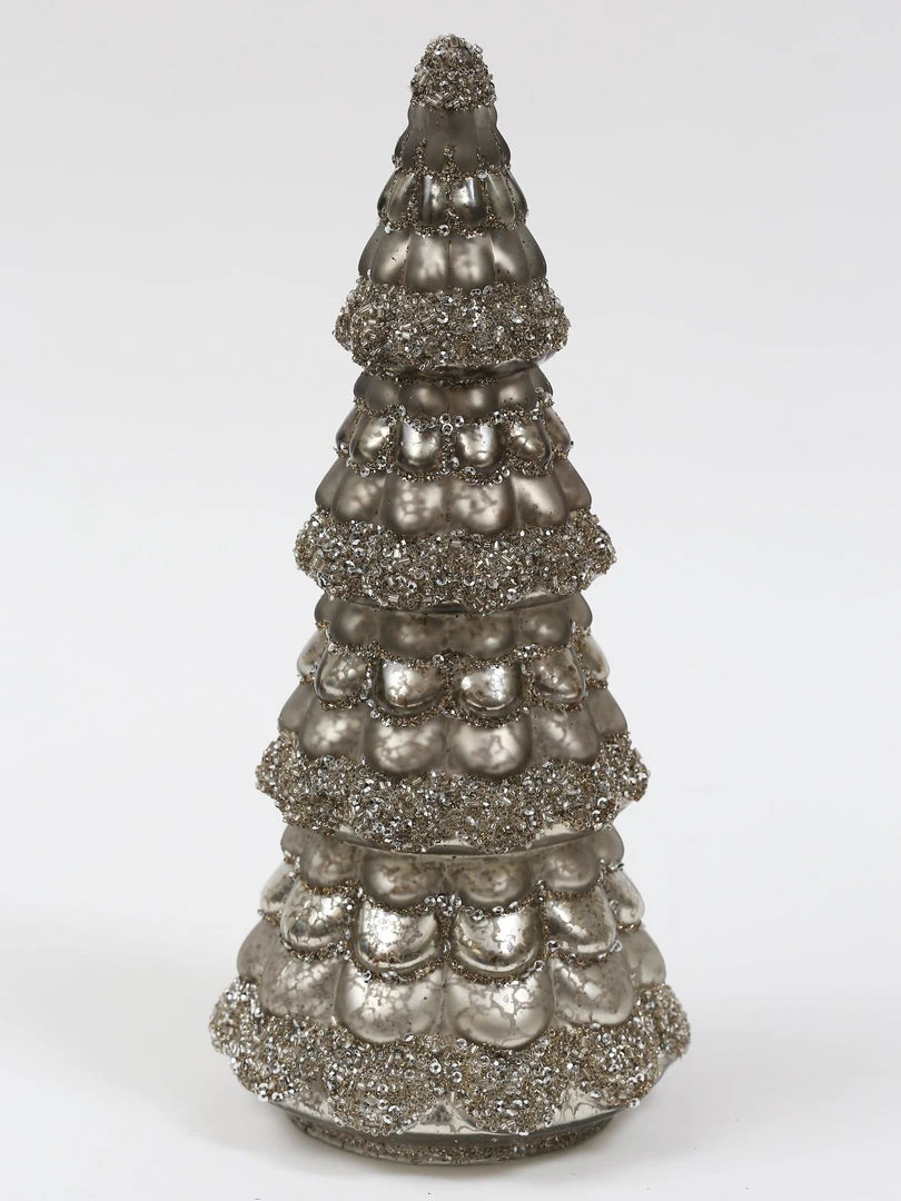 Description: This mercury glass tree with its neutral silver and gold coloring and beautiful glitter finish will instantly elevate any table or shelf as it shimmers in the light effortlessly.