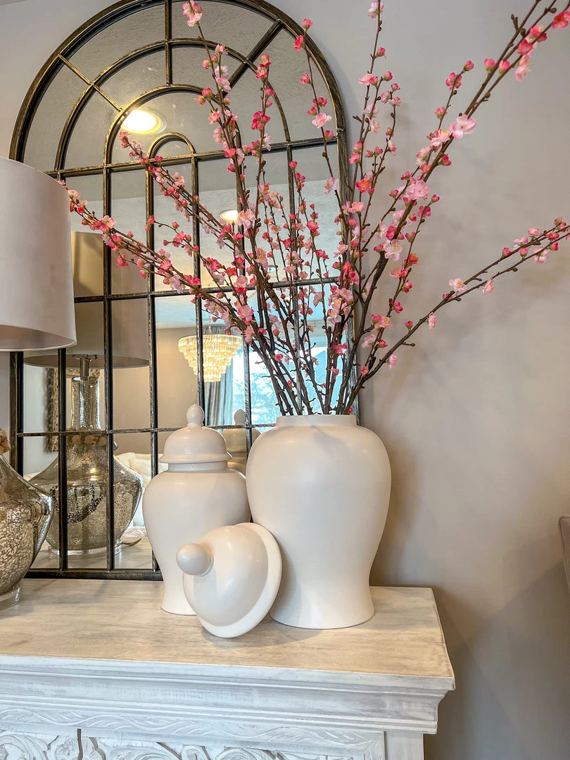 Description: These smooth white sleek ginger jars are so light and airy! We love the clean look they bring to any space. Style as-is or fill it with your favorite florals for a pop of color.
