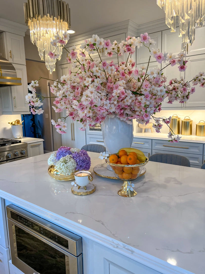 Inspire Me! Home Decor Large Rectangular Marble Tray With Cherry Blossom Details