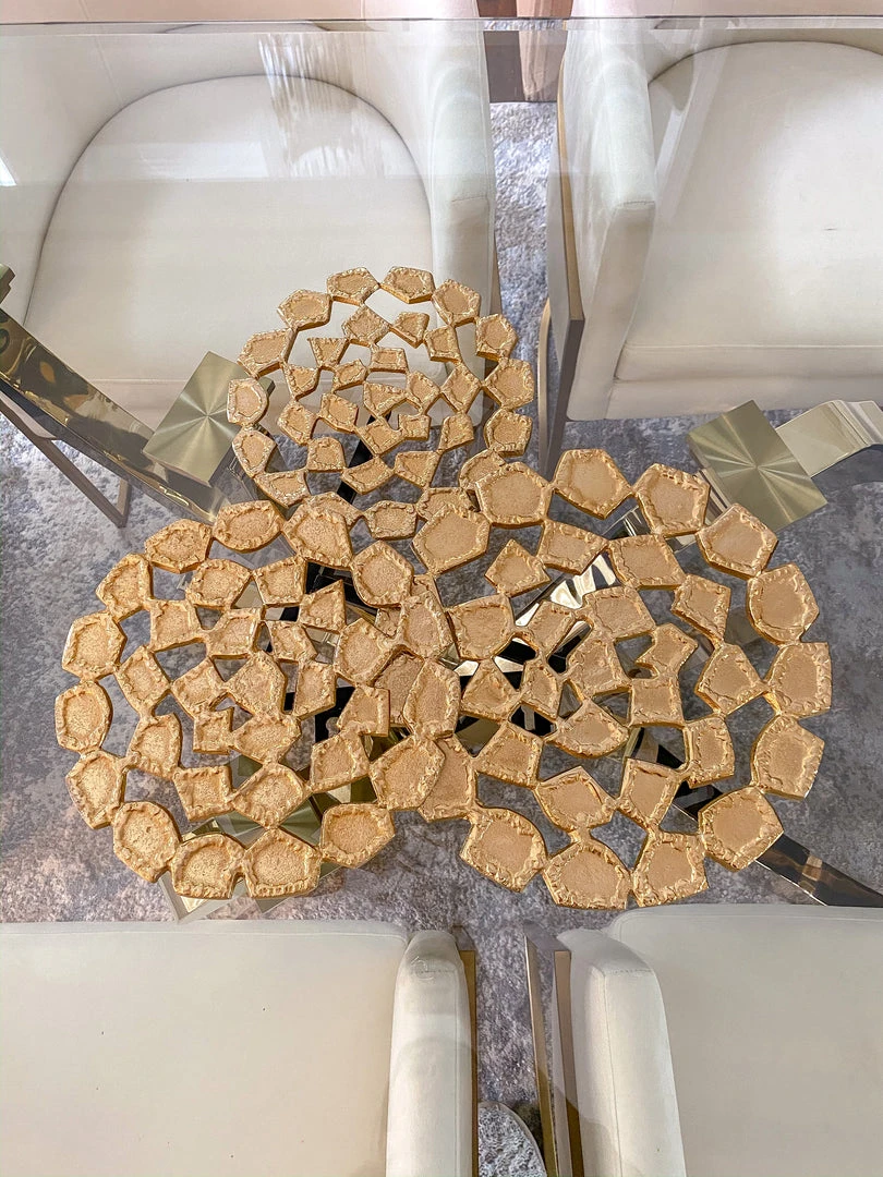 Description: Enjoy a sense of stunning texture and pattern with this beautiful wall art! This stunning gold piece features brilliant textures and patterns on each detailed piece.