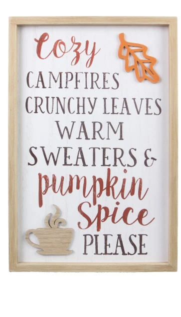 Description: These adorable wooden signs will put you in a festive mood for fall! We love the warm colors and creative text on these signs. Available in 2 styles!
