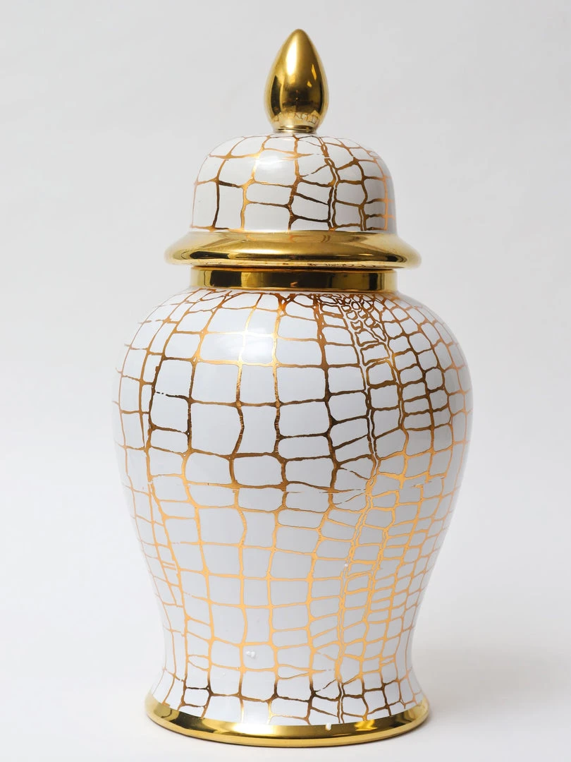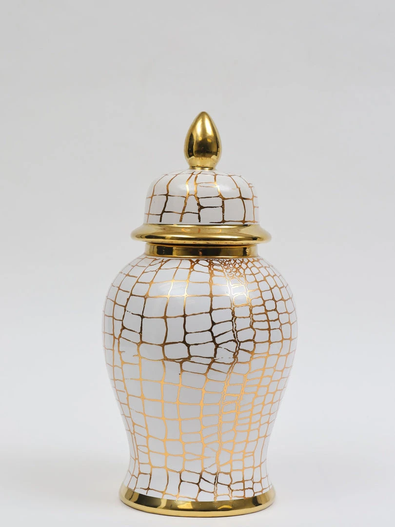 Inspire Me! Home Decor White Ceramic Jar With Elegant Gold Details (2 Sizes)