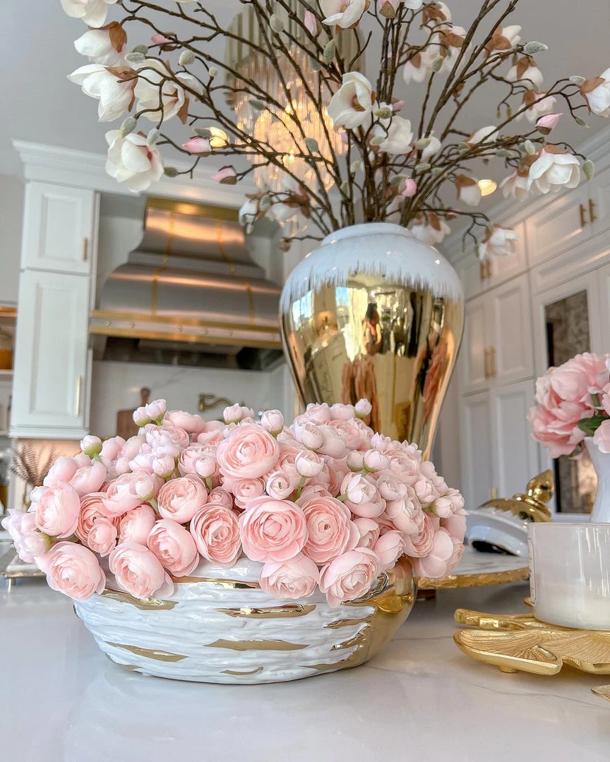 Description: This large bowl features a gold and white textured design that is perfect for your decor!