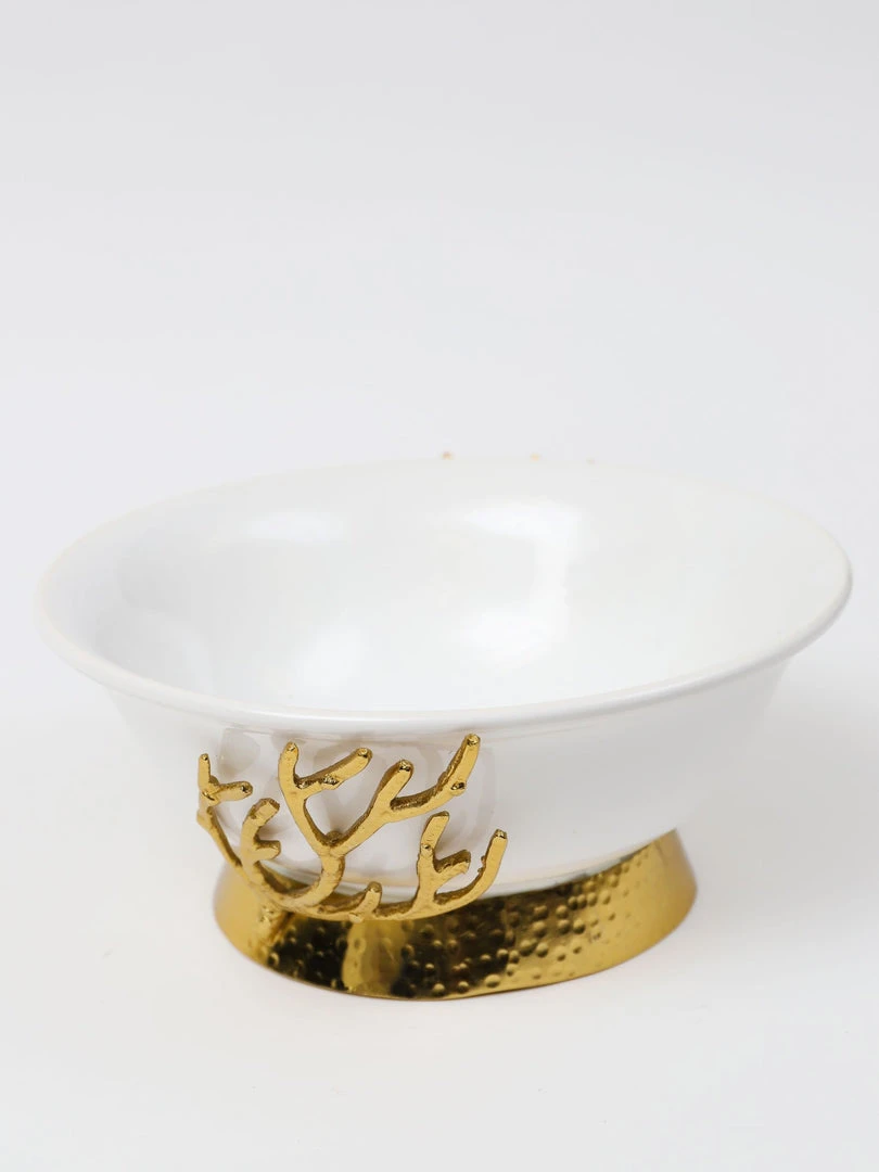 Description: This beautiful bowl is a great piece of elegant design. The gold textured details complement the glossy white ceramic to create a timeless look of sheer elegance and glam.